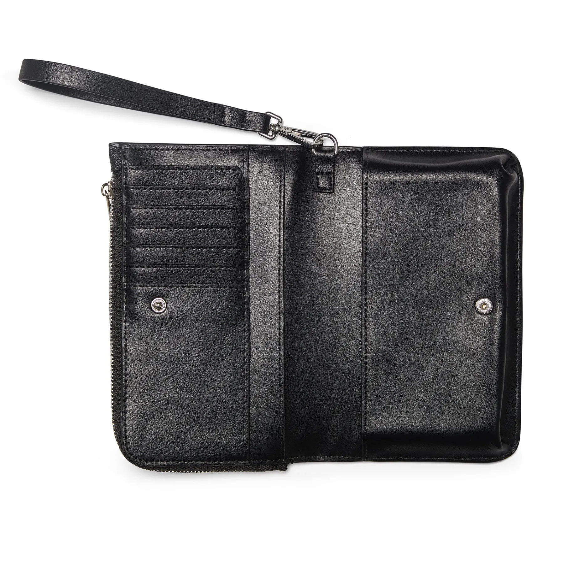 Functional and well structured, the Quinn wallet in black vegan leather is designed to simplify everyday life while offering an elegant look. Its refined finish adds a polished touch, making it a versatile accessory from day to evening.