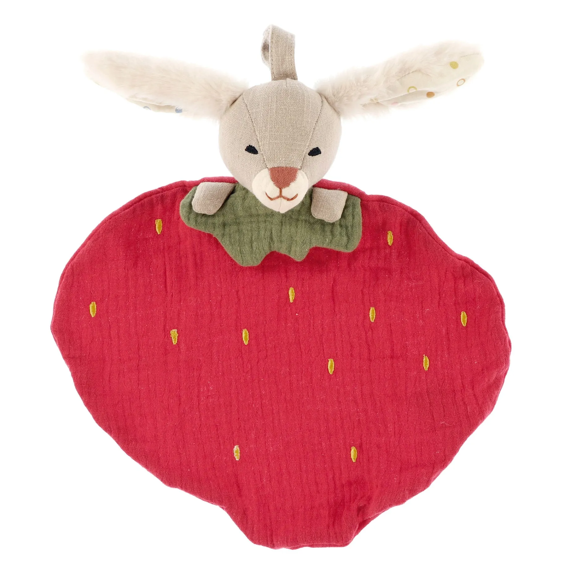 -Rabbit comforter with strawberry-shaped blanket, soft and comforting for baby