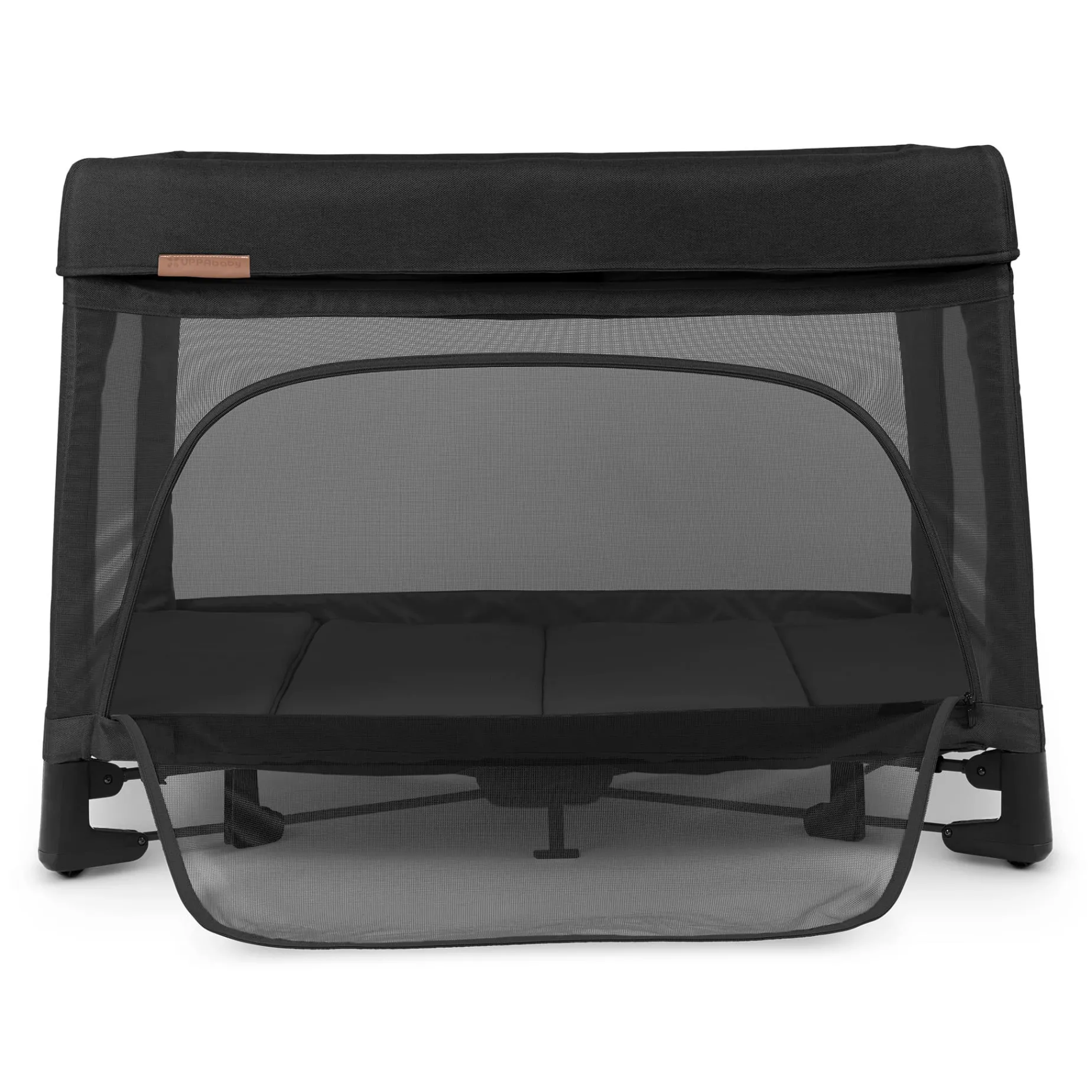 -Zip on mesh bassinet provides a ventilated, elevated bedside solution