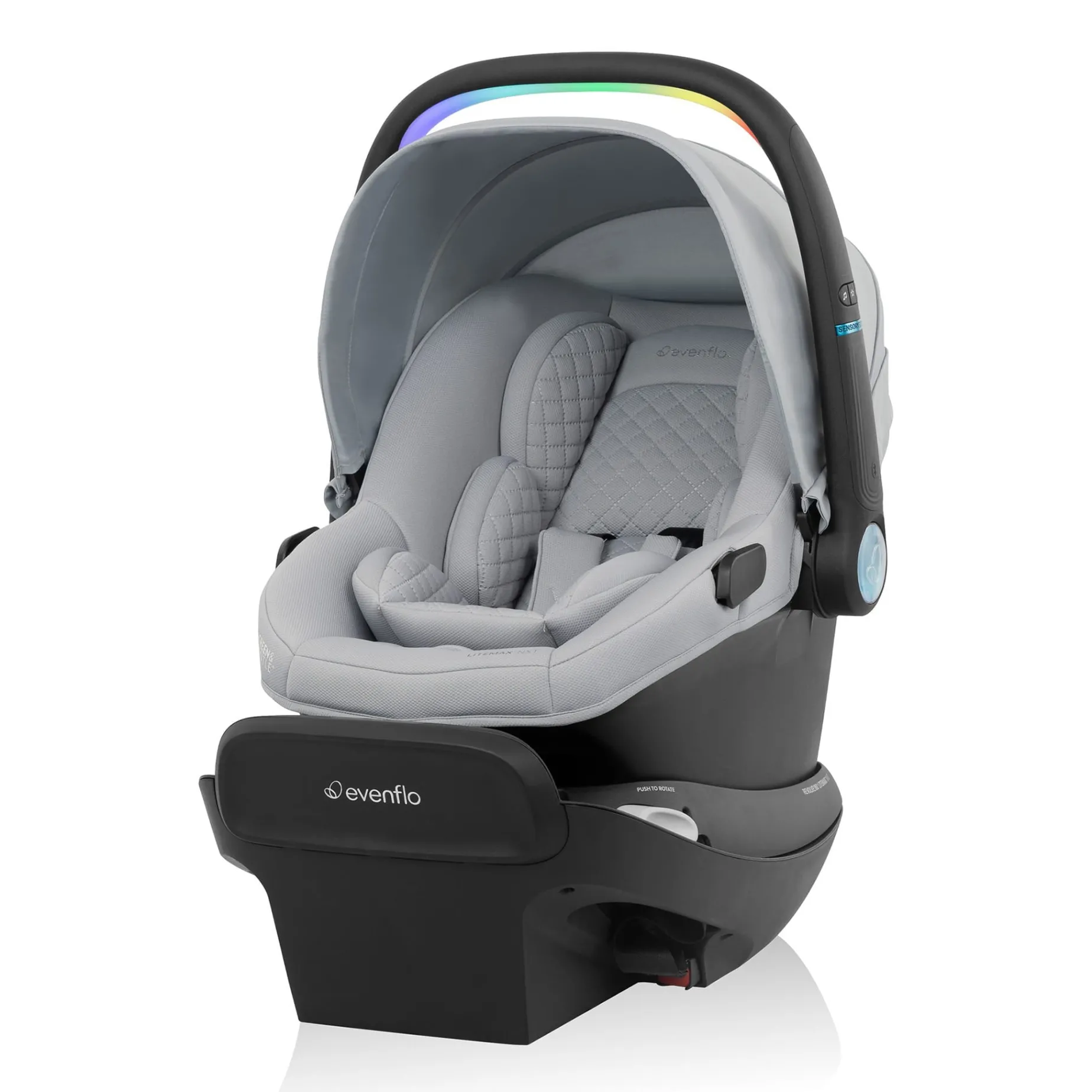 CALM YOUR BABY WITH ADVANCED TECHNOLOGY: SensorySoothe technology engages and calms your baby with lights, music and sounds integrated into the infant car seat handle; connect to the Evenflo app to customize soothing scenes and enable voice activation