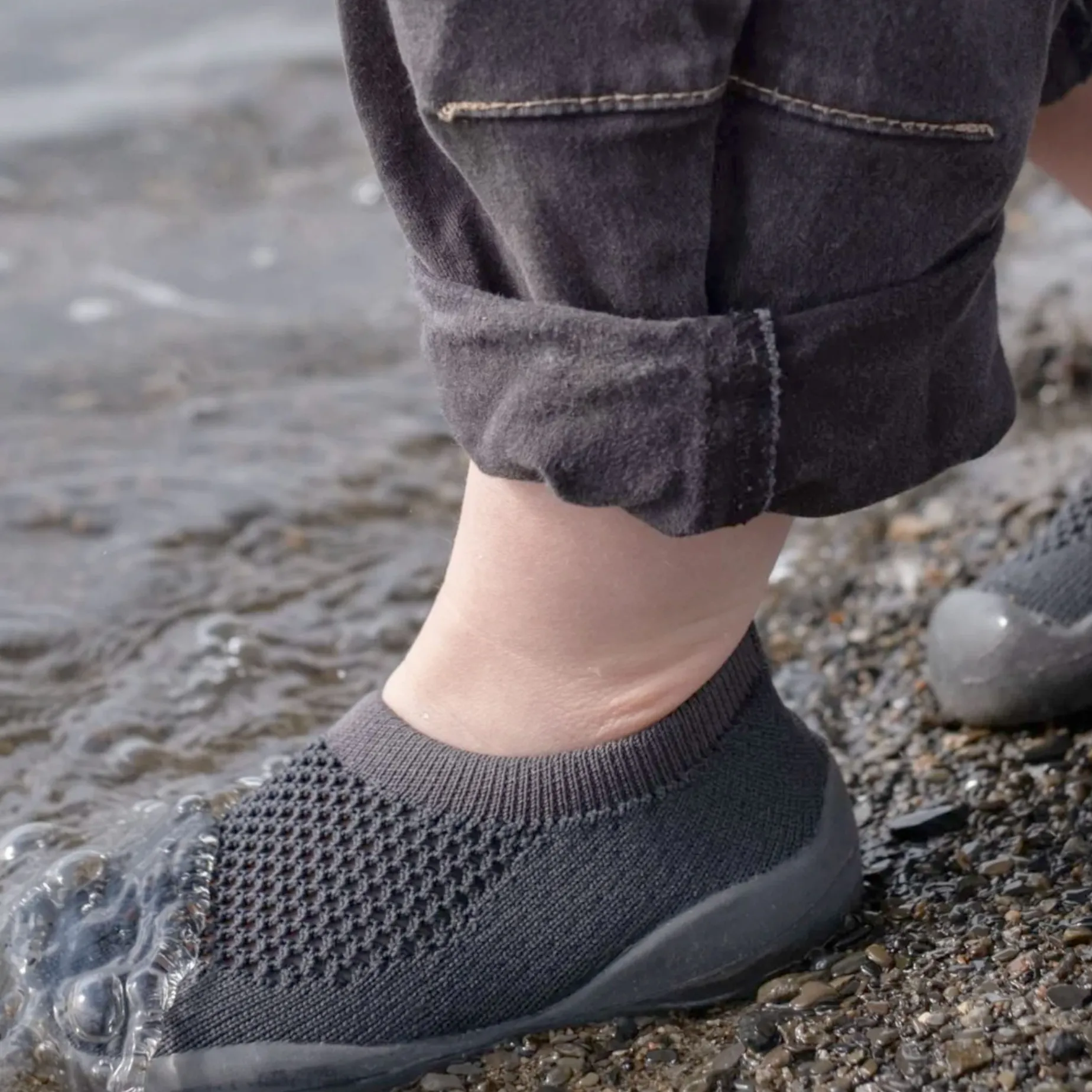 The Roamer water shoe for kids combines versatility with natural support. Its zero-drop design promotes natural alignment and balance, while the breathable 80% polyester, 20% Lycra knit upper ensures airflow to keep feet cool. The TPE rubber outsole provides slip-resistant stability on wet or uneven surfaces, and the closed-cell foam insole prevents water absorption, ensuring quick-drying and hygienic wear. With an elasticated collar for a secure fit and an ergonomic design promoting natural toe splay, plus a toe bumper for added protection, the Roamer is perfect for warm days in the park, beach, or water and machine washable for easy care.