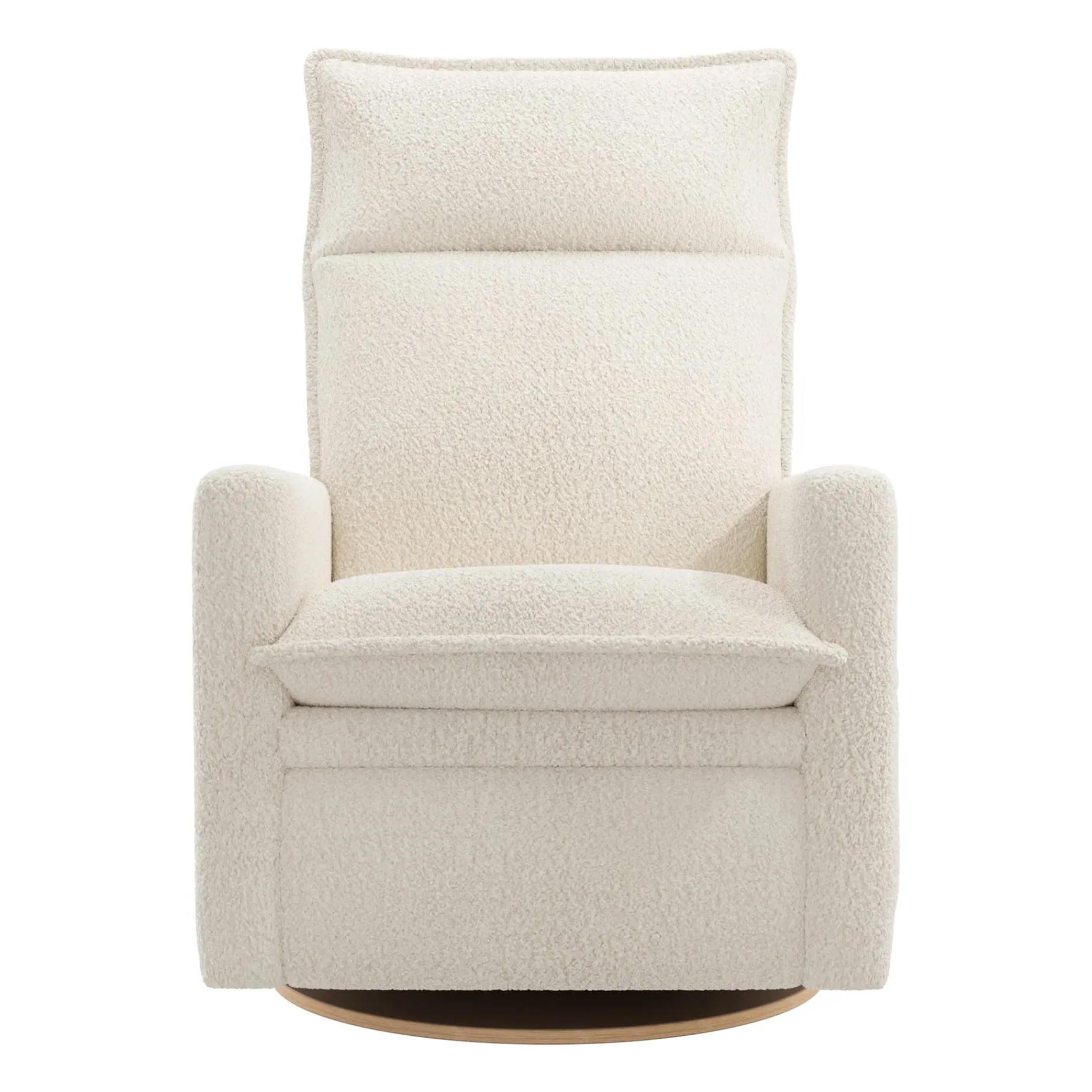 The new Arya power reclining chair brings an elegant, relaxed, and comfortable style to baby’s rooms. Its plush cushions allow you to sink into the chair and find the ideal position for ultimate relaxation.The power version offers smooth motorized reclining, with a control panel built into the armrest featuring buttons to control the recline, as well as USB and USB-C ports to keep electronic devices within reach.The recliner swivels with a smooth rocking motion, so you won’t disturb your little one’s sleep while settling in comfortably.