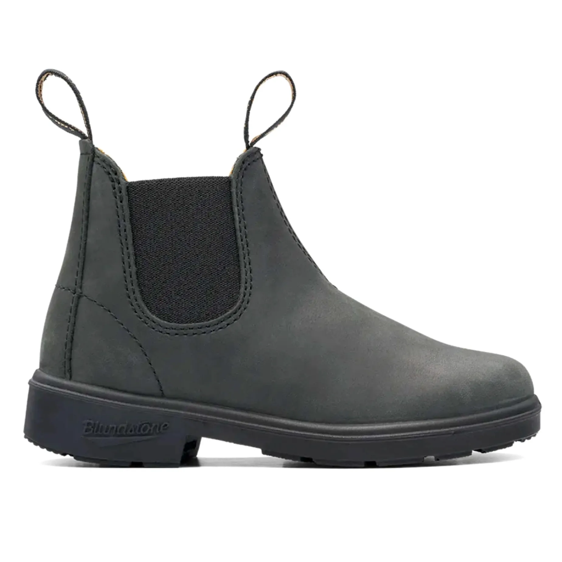 Blundstone 1325 Kids boots in Rustic Black, a laid-back black leather ready for the playground and classroom.