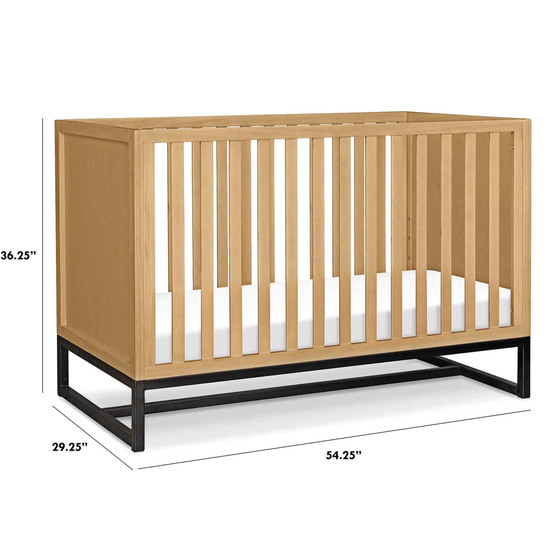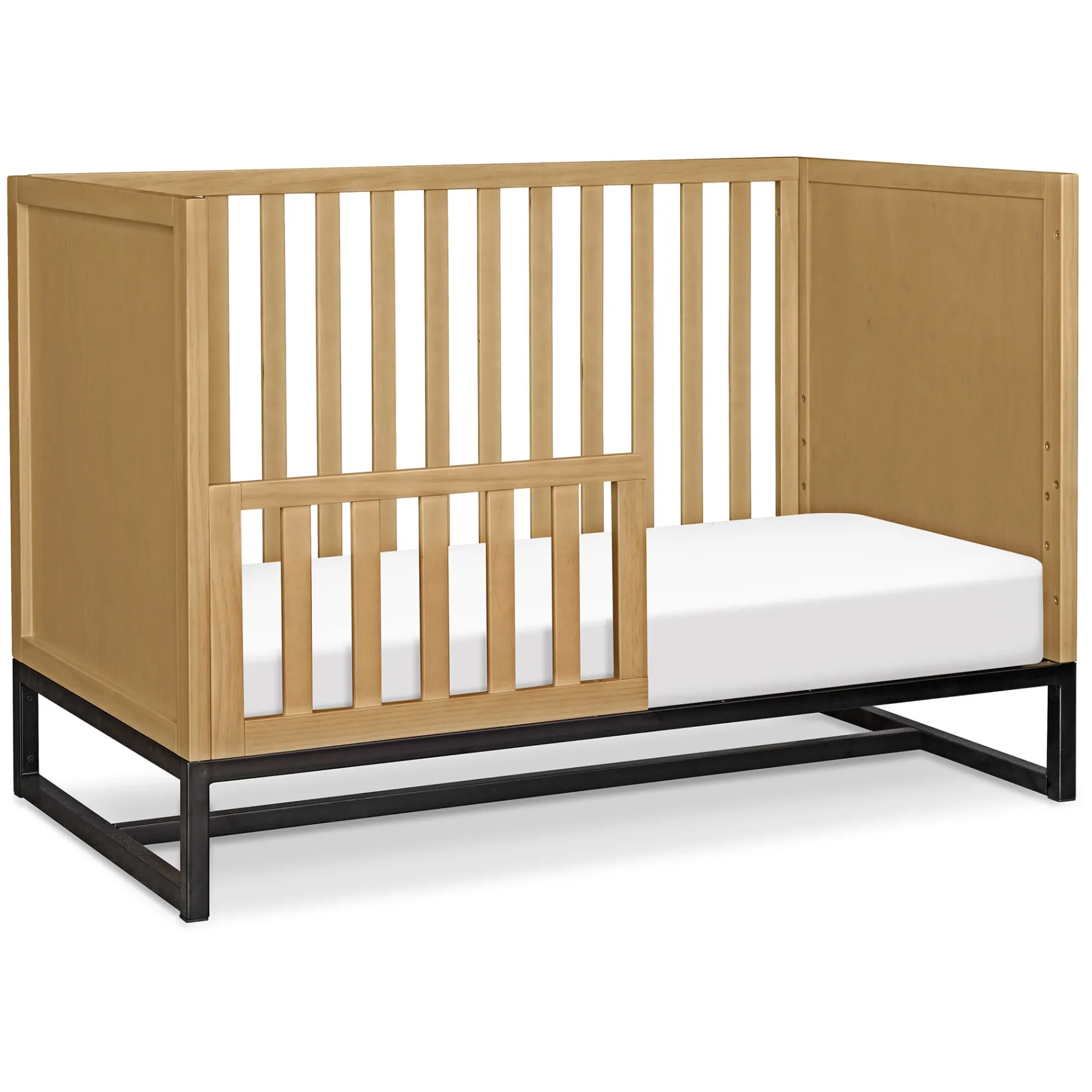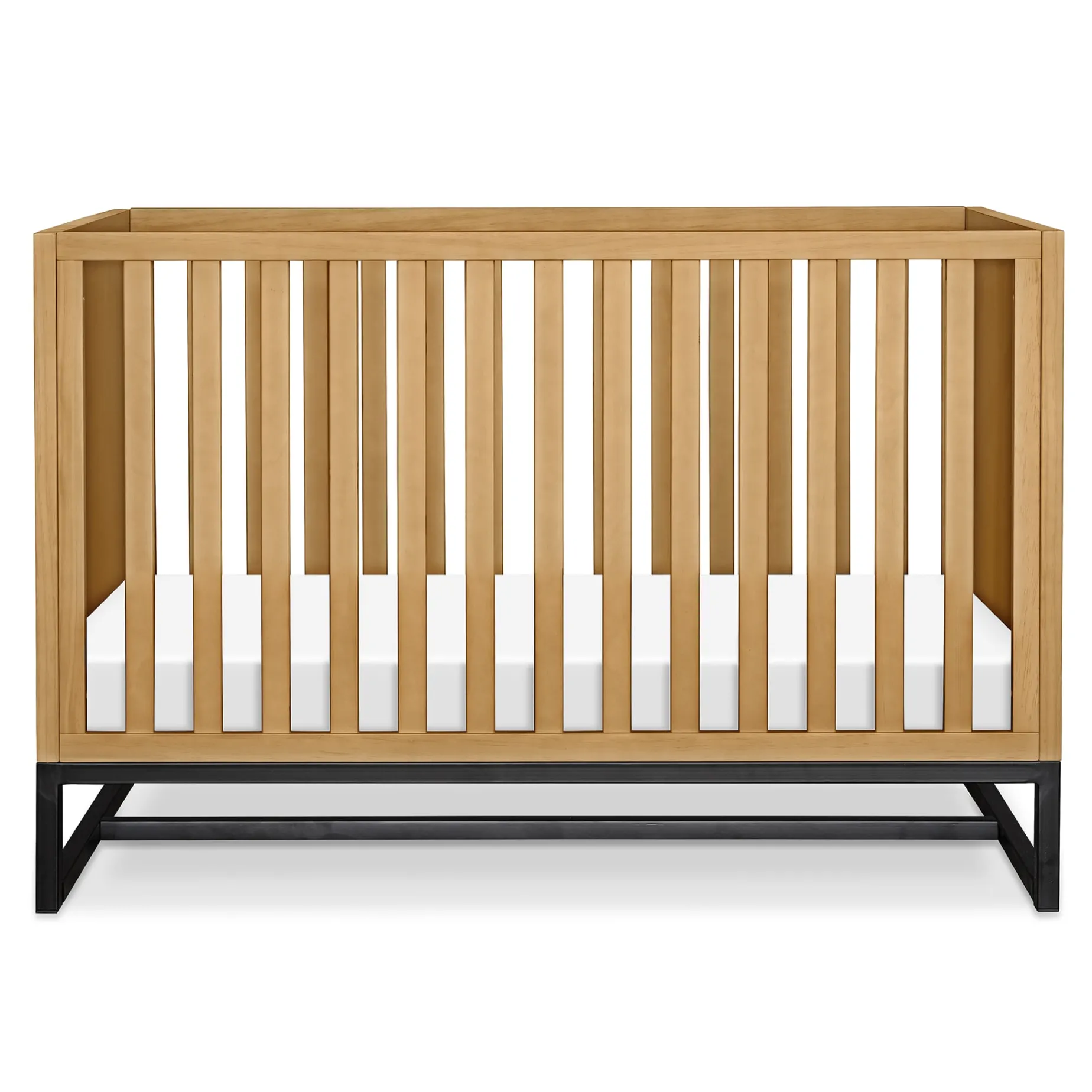 The clean lines and chic metal base of the Ryder 3-in-1 Crib will bring a contemporary feel to any nursery. Built to seamlessly transition from newborn to toddler, the crib has four different mattress heights and easily converts to a toddler bed and daybed. Coordinates with the Ryder Convertible Changing Table and Cubby Bookcase for a stylish and modern nursery.