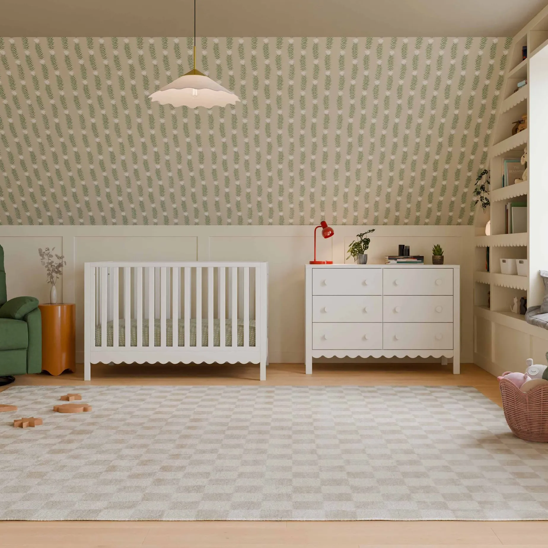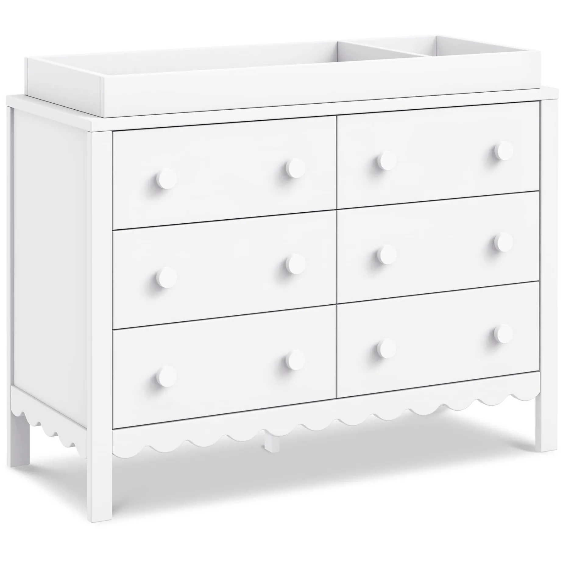 From its charming scallop detailing to its playful colors, the Sammy Scallop 6-Drawer Dresser easily transitions with your little one from baby to teen. Paired with its matching 4-in-1 convertible crib and bookcase, the Sammy Scallop Collection ensures that every moment with your little one is filled with style and joy.