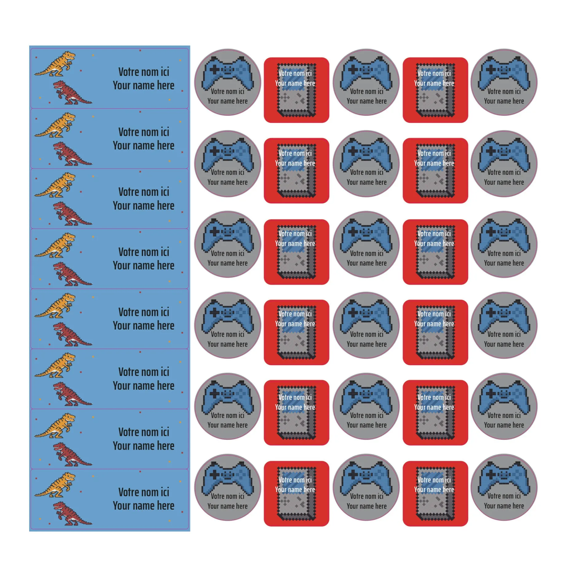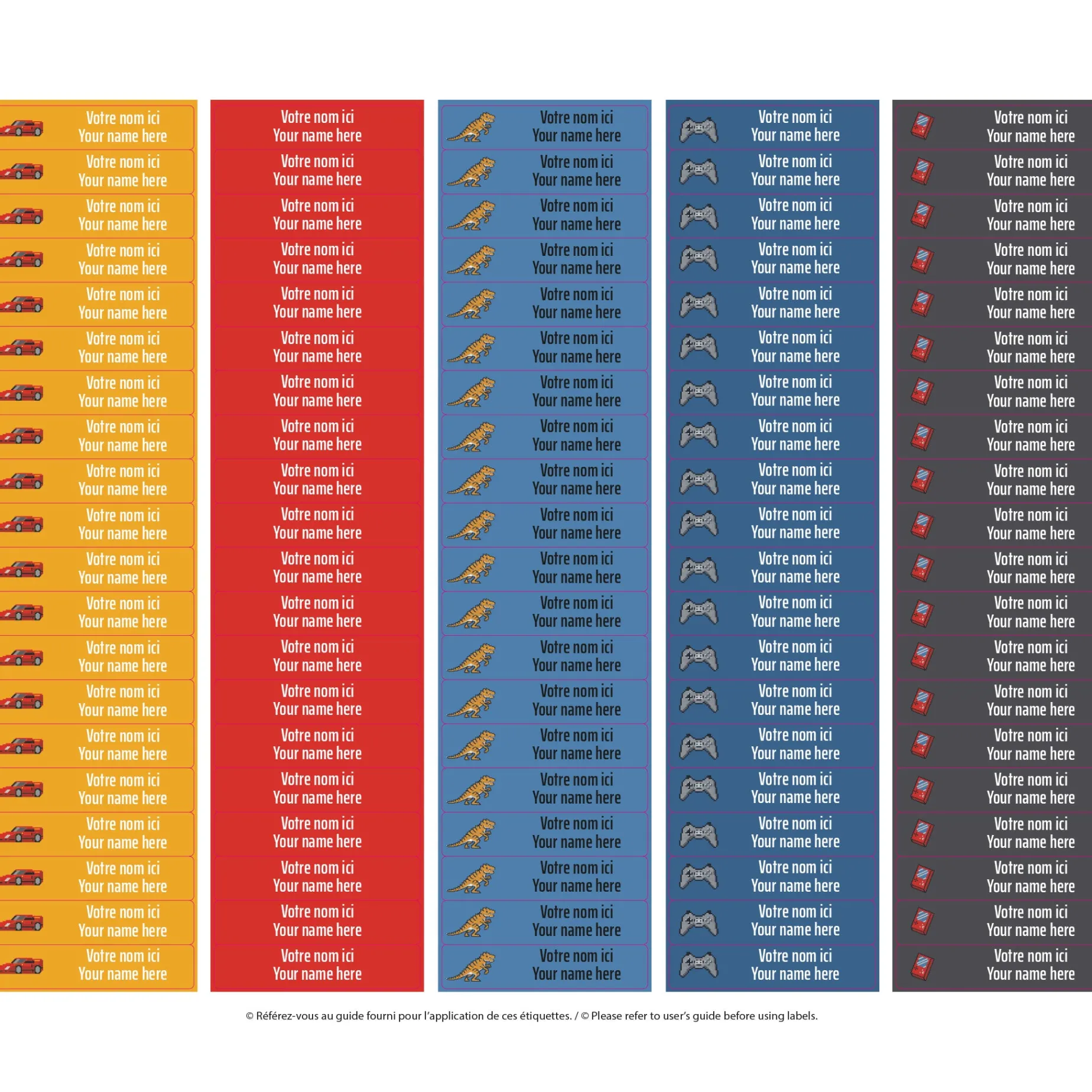 The set of personalized sticky labels ClĂ©ment becomes your best ally for the quick identification of your family’s personal items. In a few seconds, young and old will be able to recognize their school items, lunchbox items, sports equipment, shoes, clothes, etc. Waterproof and durable, the labels are not afraid of freezing, water, heat, or steam. They are resistant to the microwave, refrigerator, freezer, dishwasher, washing machine, and dryer.