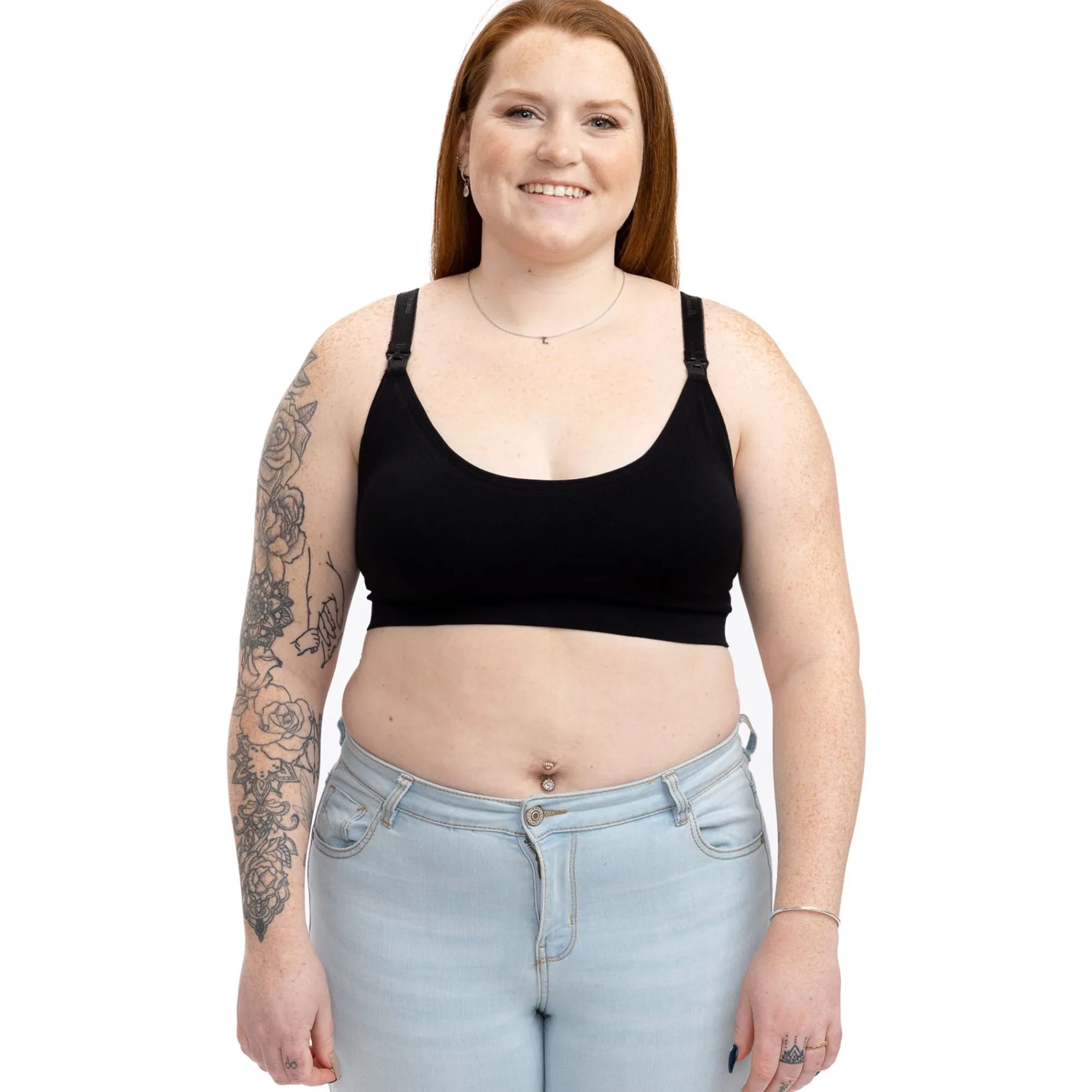 -Odor-free comfort stretch fabric available in nude or navy polka dots; sizes XS–XL