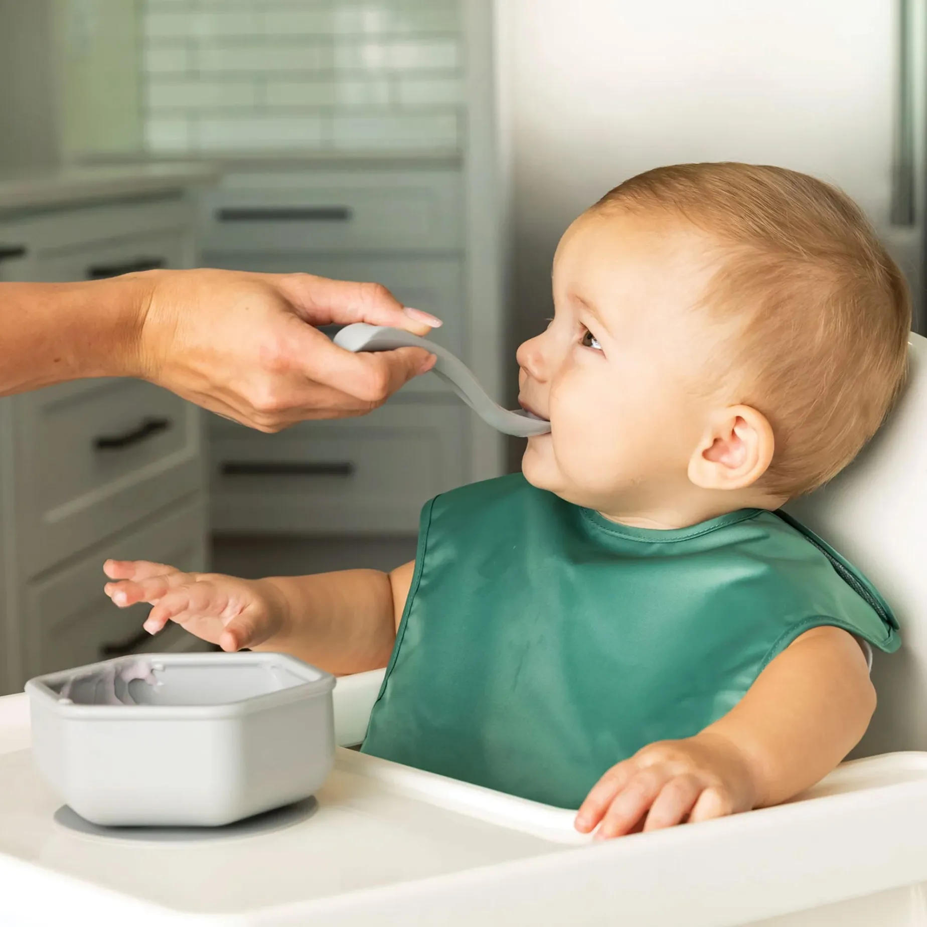Tiny Twinkle’s Silicone Baby Spoons are the perfect feeding tool for parents to feed infants first purees. Made from 100% food grade silicone, they are durable yet flexible and soft on baby’s gums. Specifically designed with a long ergonomic handle to allow the spoons to reach to the bottom of jars. Shallow spoon bowls make perfect portions for feeding baby. Spoons are dishwasher and freezer safe. For use with ages 4 – 9 months, not intended for self feeding.