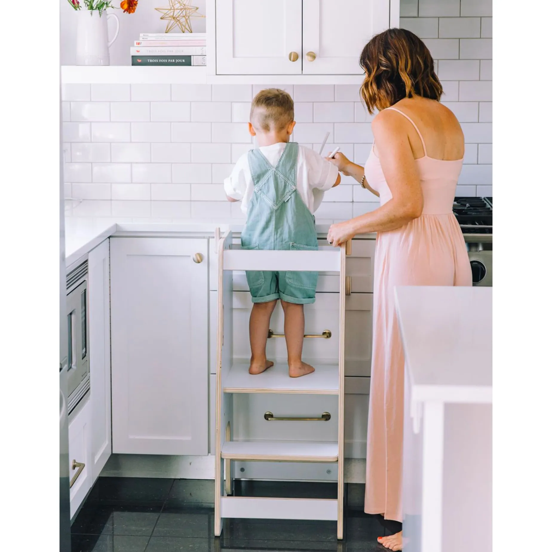 Montessori-inspired, the learning tower, also known as kitchen helper or observation tower, allows your child to develop his autonomy in a safe and interactive way by being involved in daily tasks. It makes mealtime more fun and, above all, less stressful!