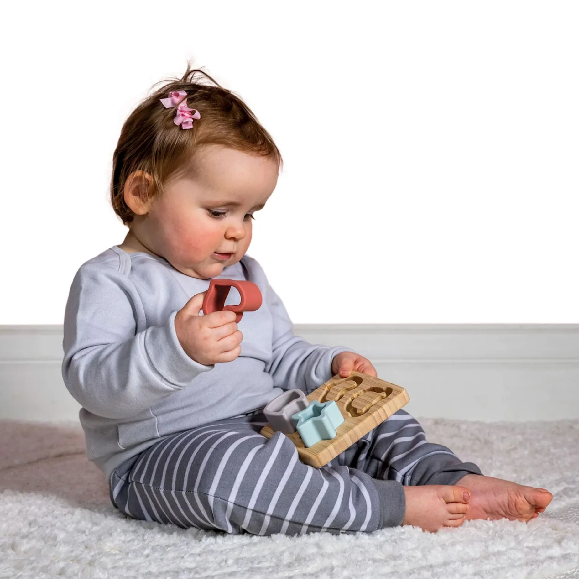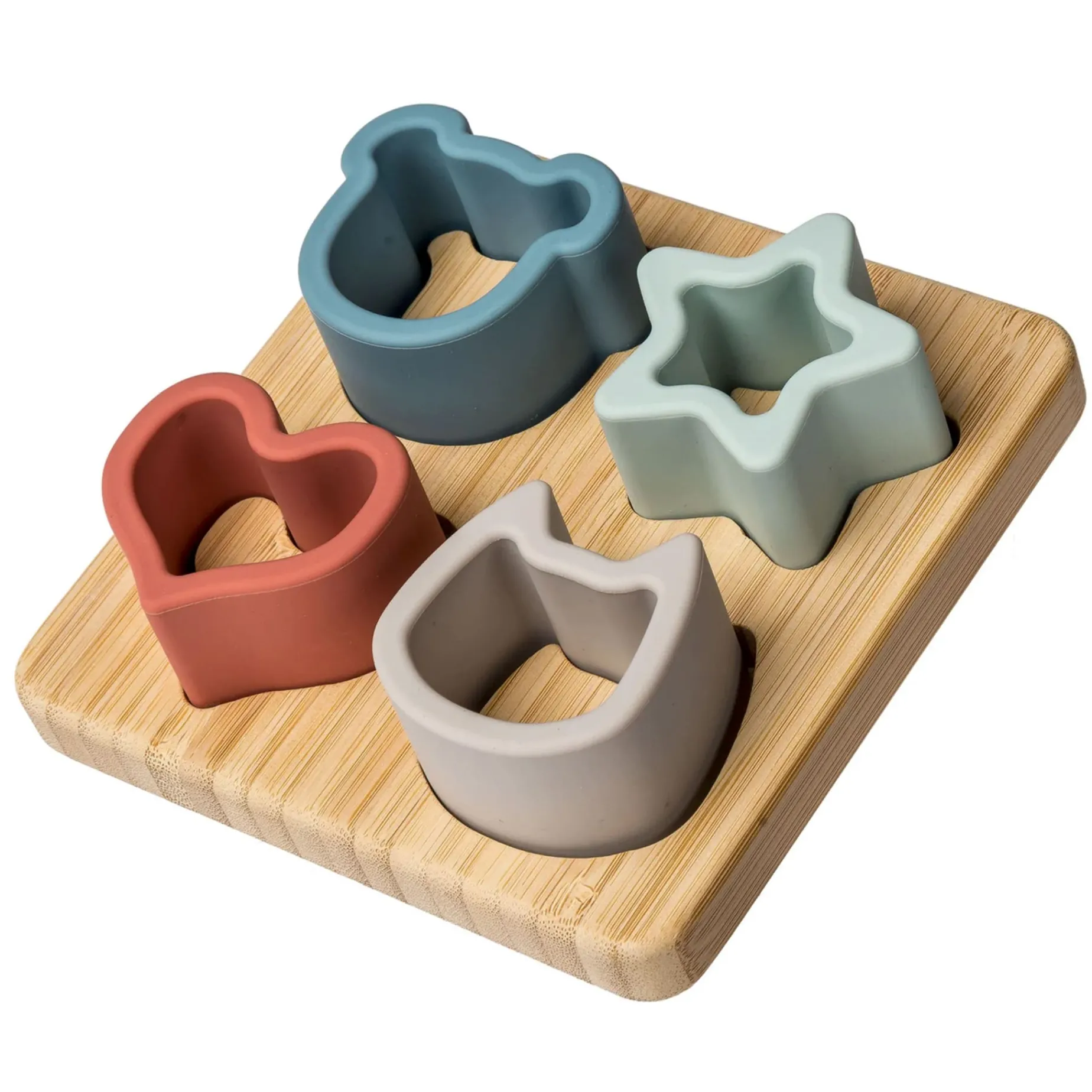 The new line of silicone toys features simple designs and a beautiful color palette taken from one of our best-selling lines, Putty. The silicone is a soft, flexible material with no sharp edges, perfect for safe play. They are made of food-safe silicone, perfect for teething little ones.