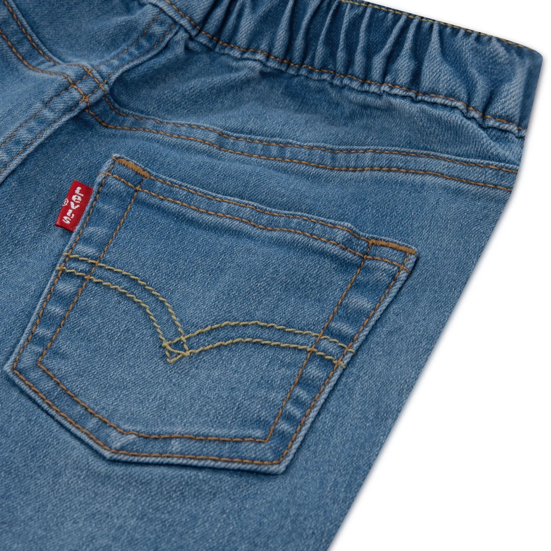 Shorts: stretchy denim, elastic back waistband, signature Levi’s® back pockets, hook and eye closure, zip fly;