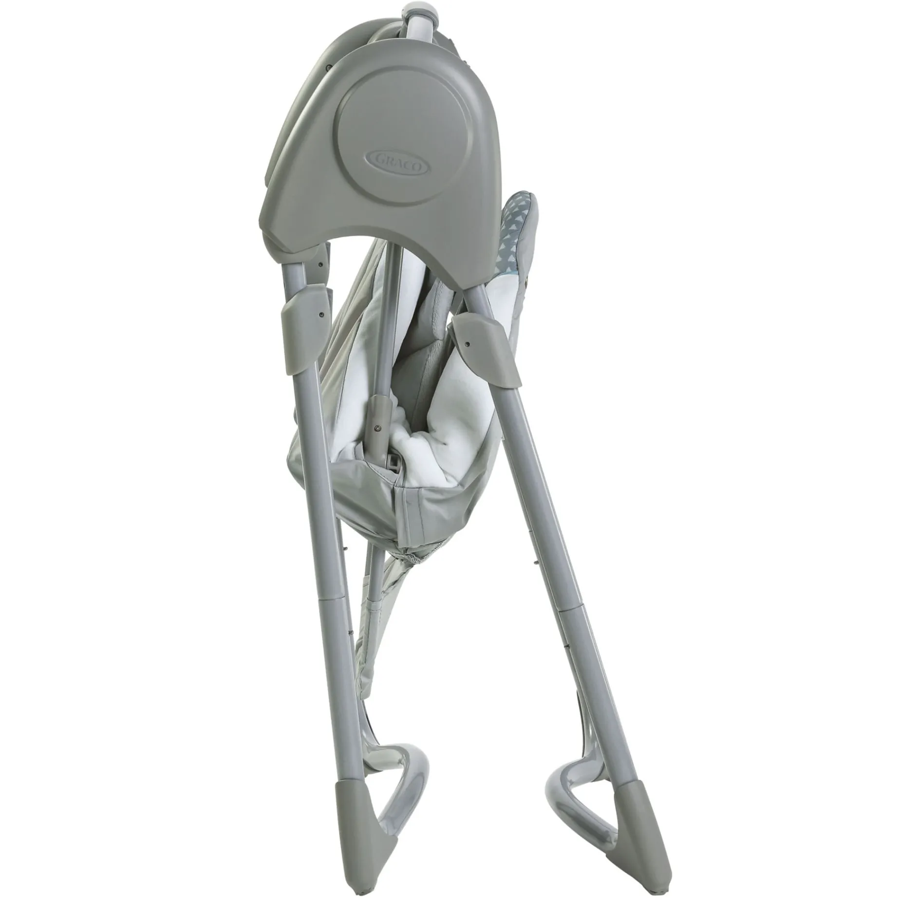 -The Graco® Slim Spaces™ Compact Baby Swing is designed to save space, while the height-adjustable legs keep baby at the perfect height for interactions