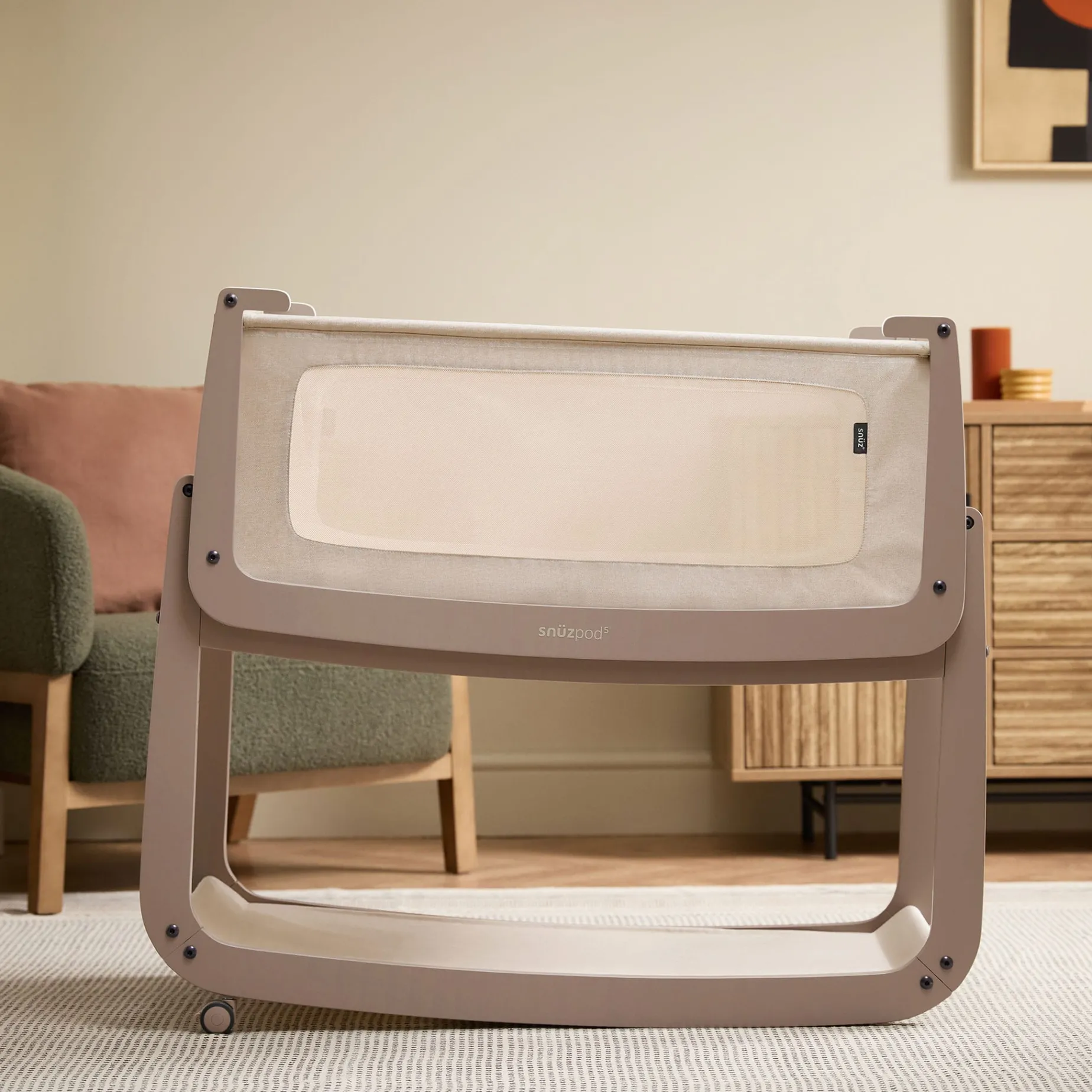 Meet the latest generation of the SnüzPod, the original bedside crib that has supported over one million dreams. Combining safety, flexibility and smart design, the SnüzPod5 keeps baby close during their first six months. Breathable mesh windows and a 3D mesh mattress help regulate temperature, while the portable design and wheels provide everyday convenience.