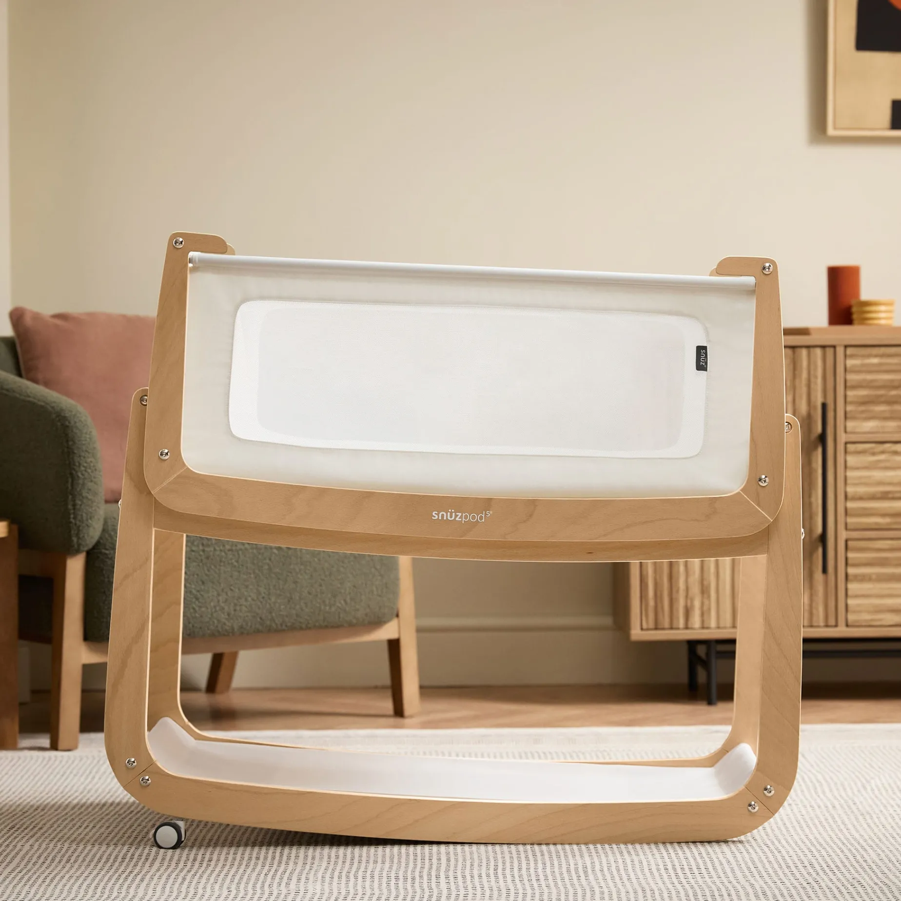 Meet the latest generation of the SnüzPod, the original bedside crib that has supported over one million dreams. Combining safety, flexibility and smart design, the SnüzPod5 keeps baby close during their first six months. Breathable mesh windows and a 3D mesh mattress help regulate temperature, while the portable design and wheels provide everyday convenience.