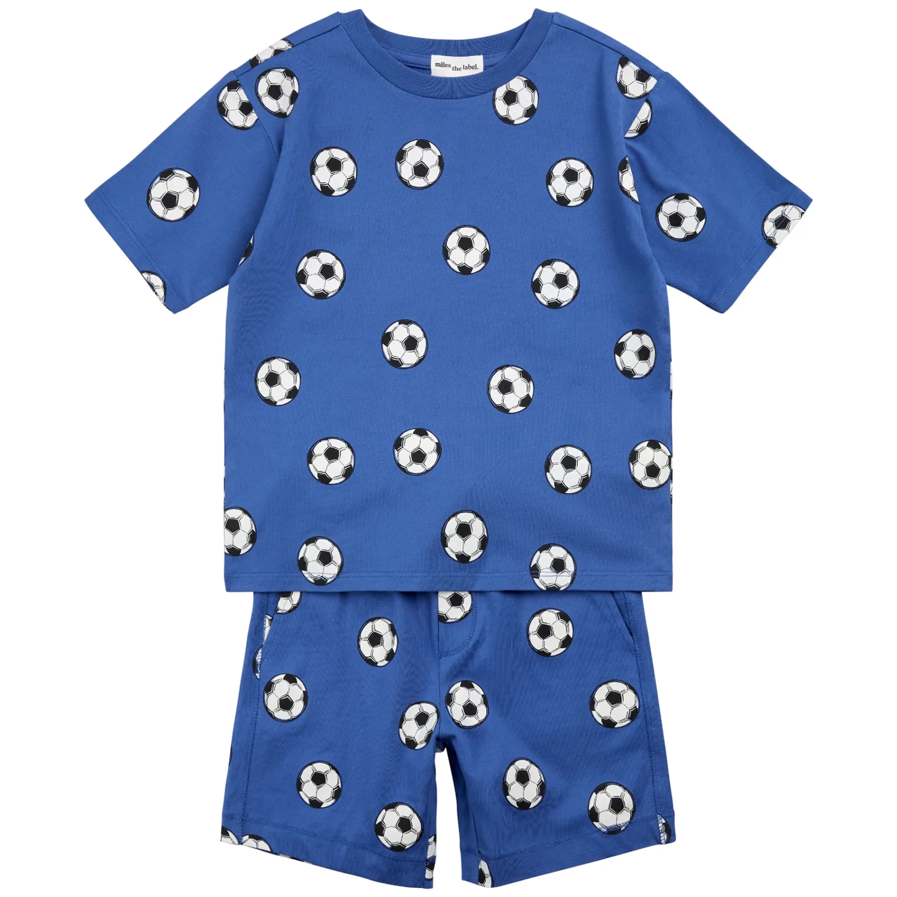 Perfect for days at home in the garden. This 2-piece set includes shorts and a t-shirt and features our all-over Soccer Ball print to keep him feeling sporty and fun while navigating milestones like walking, kicking and more. Made from organically grown cotton jersey, the set is light and breathable for the warmer seasons yet soft and delicate on his skin.Â