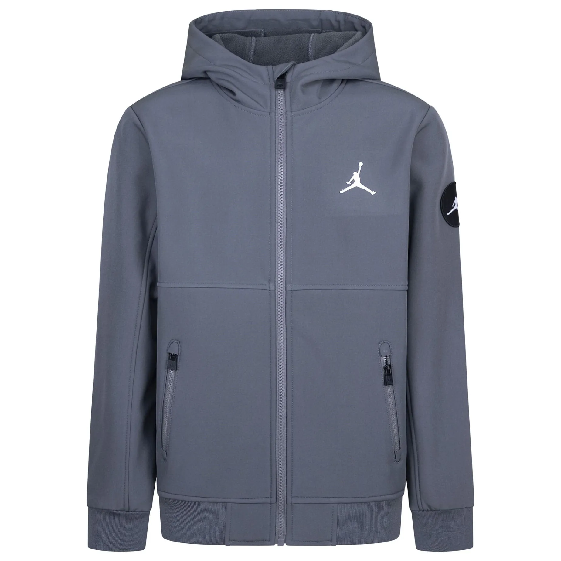 Caractéristiques :Stretch poly fabric bonded with polar fleece. Standing collar. Hood. Long sleeves. Full-zip closure. Zippered pockets on the sides. Rib knit cuffs and hem. Small Jumpman logo on chest. Wordmark logo across the back. Jumpman patch on left sleeve.