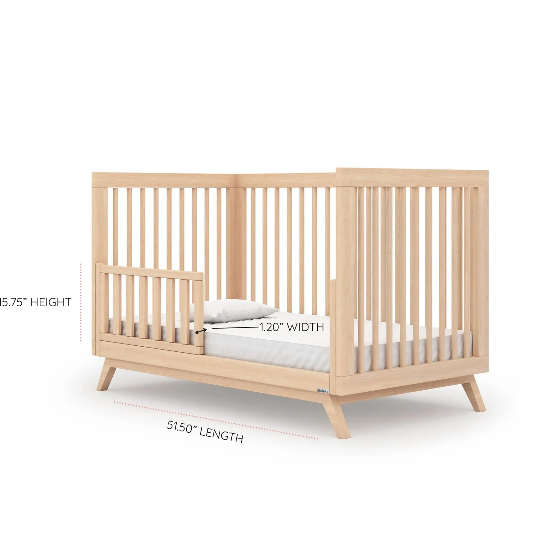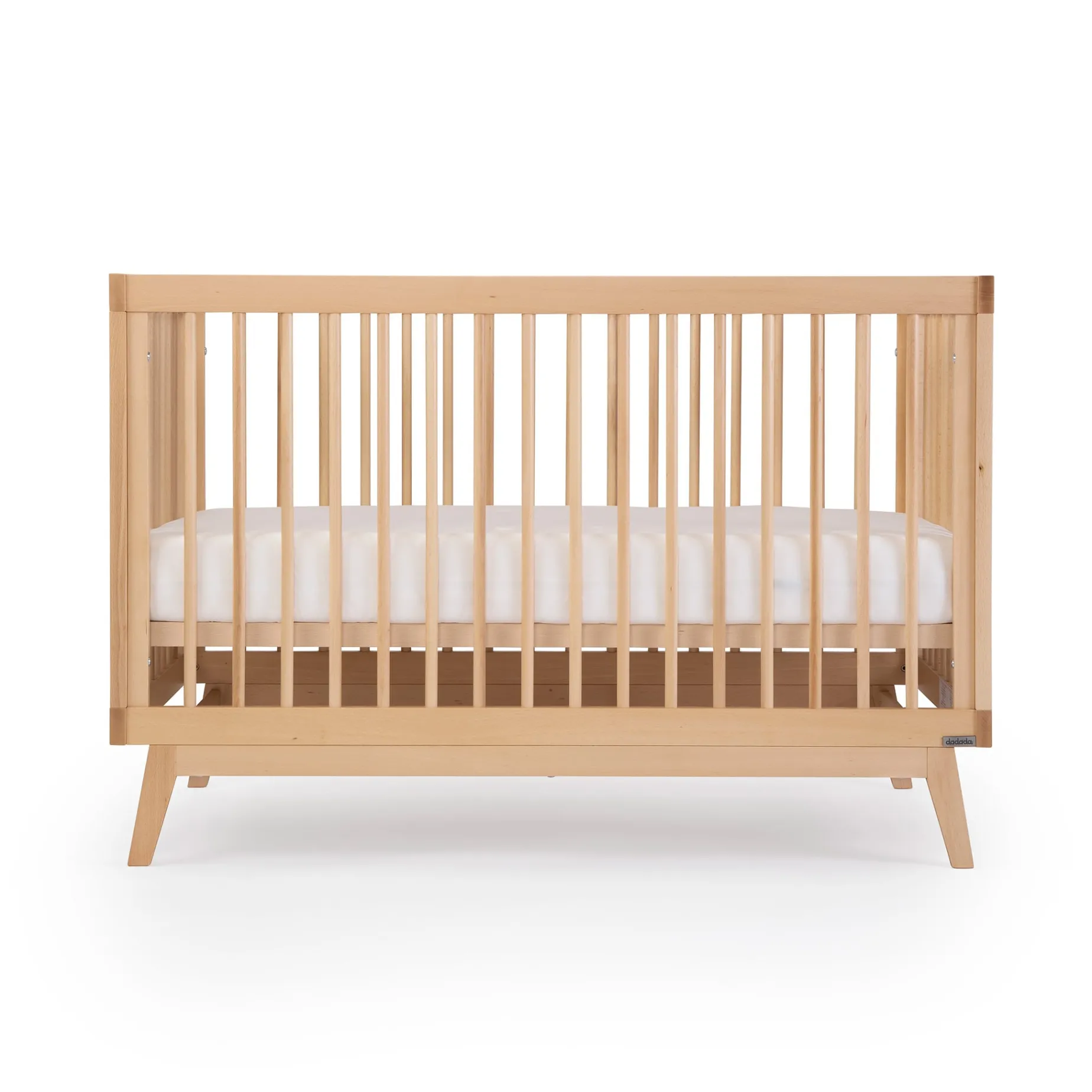 Made in Italy and GREENGUARD Gold certified, the Soho 3-in-1 Convertible Crib updates a classic open Scandinavian design with mid-century modern lines to complement any room style. Sturdy inclined legs tuck beneath a strong frame and all four walls allow easy air circulation. With three mattress positions available, you can easily adjust the bed heights to match your baby’s growth from newborn to toddler (toddler bed/day bed conversion kit sold separately).