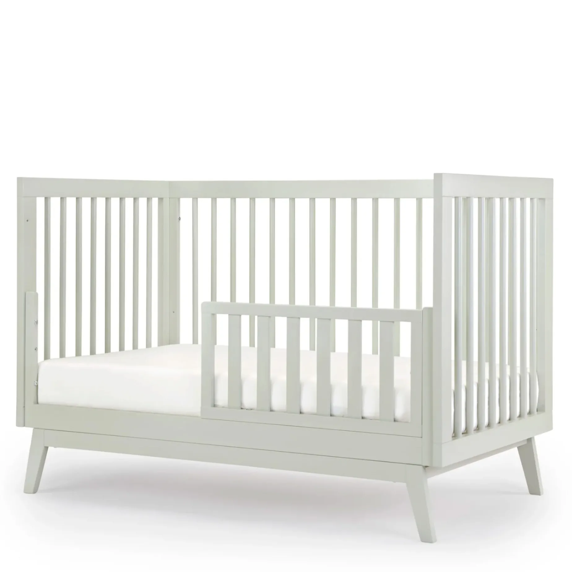 Made in Italy and GREENGUARD Gold certified, the Soho 3-in-1 Convertible Crib updates a classic open Scandinavian design with mid-century modern lines to complement any room style. Sturdy inclined legs tuck beneath a strong frame and all four walls allow easy air circulation. With three mattress positions available, you can easily adjust the bed heights to match your baby’s growth from newborn to toddler (toddler bed/day bed conversion kit sold separately).