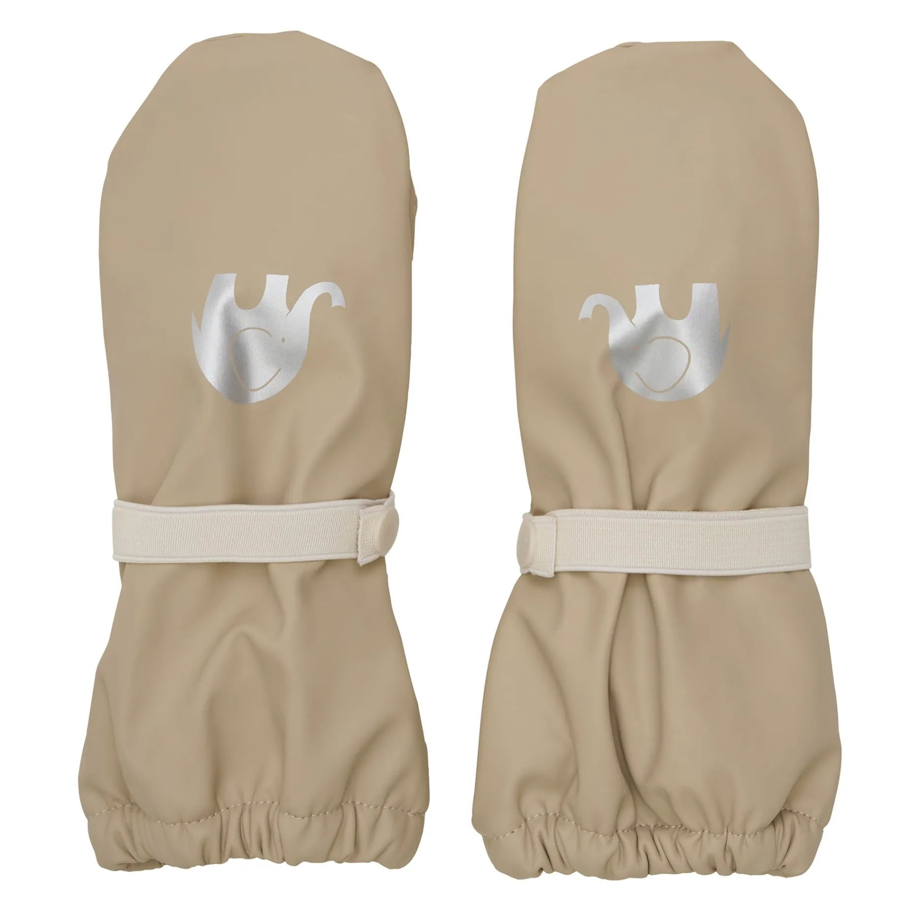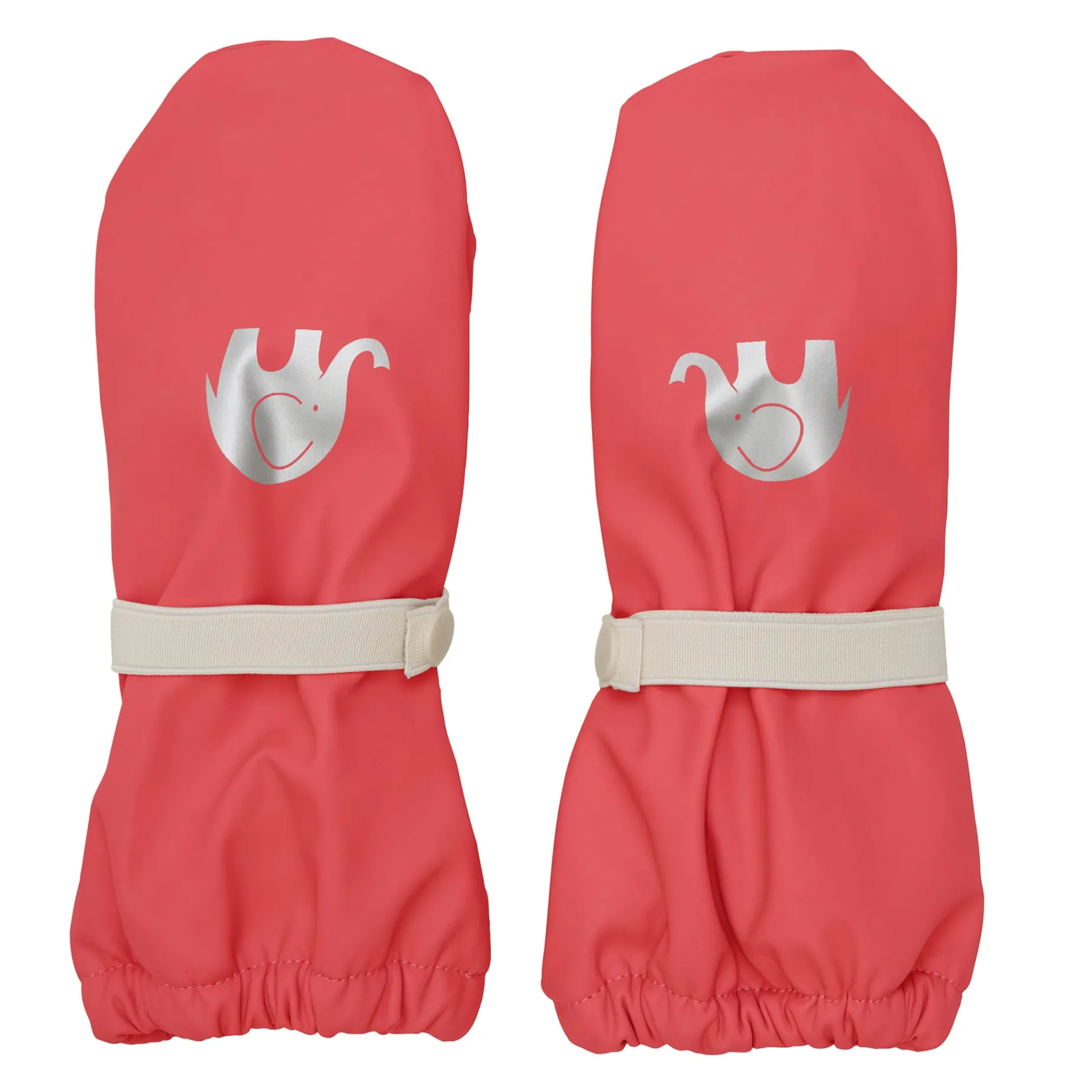 CeLaVi warm PU mittens with fleece lining. Available in solid colors and with an all-over print. The mittens have elasticated wrists and snap closures. Features the iconic CeLaVi elephant logo. These practical and waterproof mittens are perfect for playing in snow and wet sand. Certified according to GRS standards – Made with 34% recycled materials CERES-0366