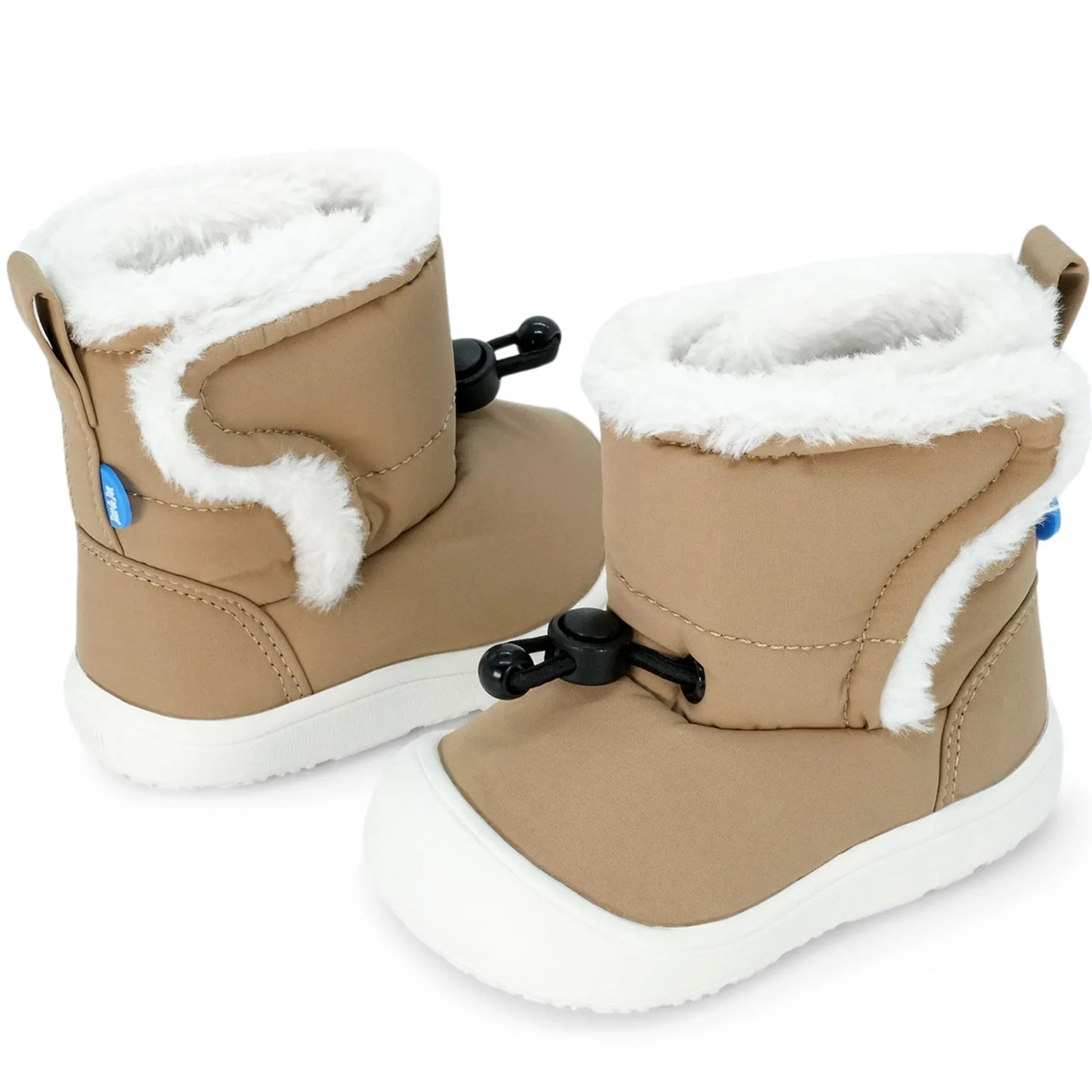 Stay-Put baby booties, now with rubber soles to protect toes and provide excellent grip on snowy surfaces! The flexible, lightweight soles move easily with little feet to naturally support developing muscles and bones. Little toes stay warm thanks to a water-repellent and windproof shell, faux fur lining, and a mid-layer of insulation. Our baby winter boots are available in four sizes, making it easy to find the perfect fit for those first steps.