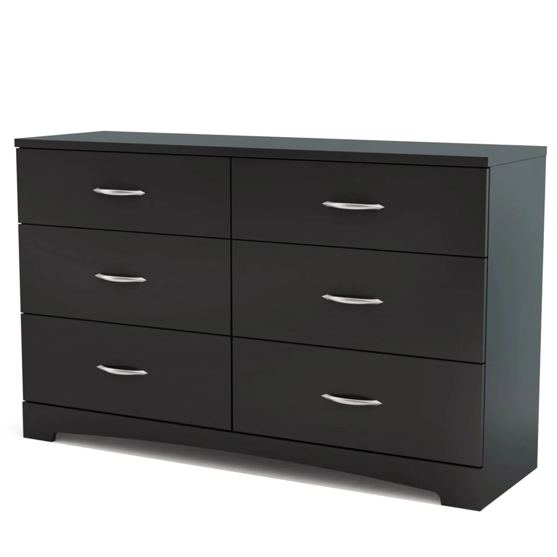 – SLEEK AND MODERN: With contemporary shaping and finish, this double dresser features a curved kickboard and contrasting metal handles, making it a stylish addition to any bedroom decor.