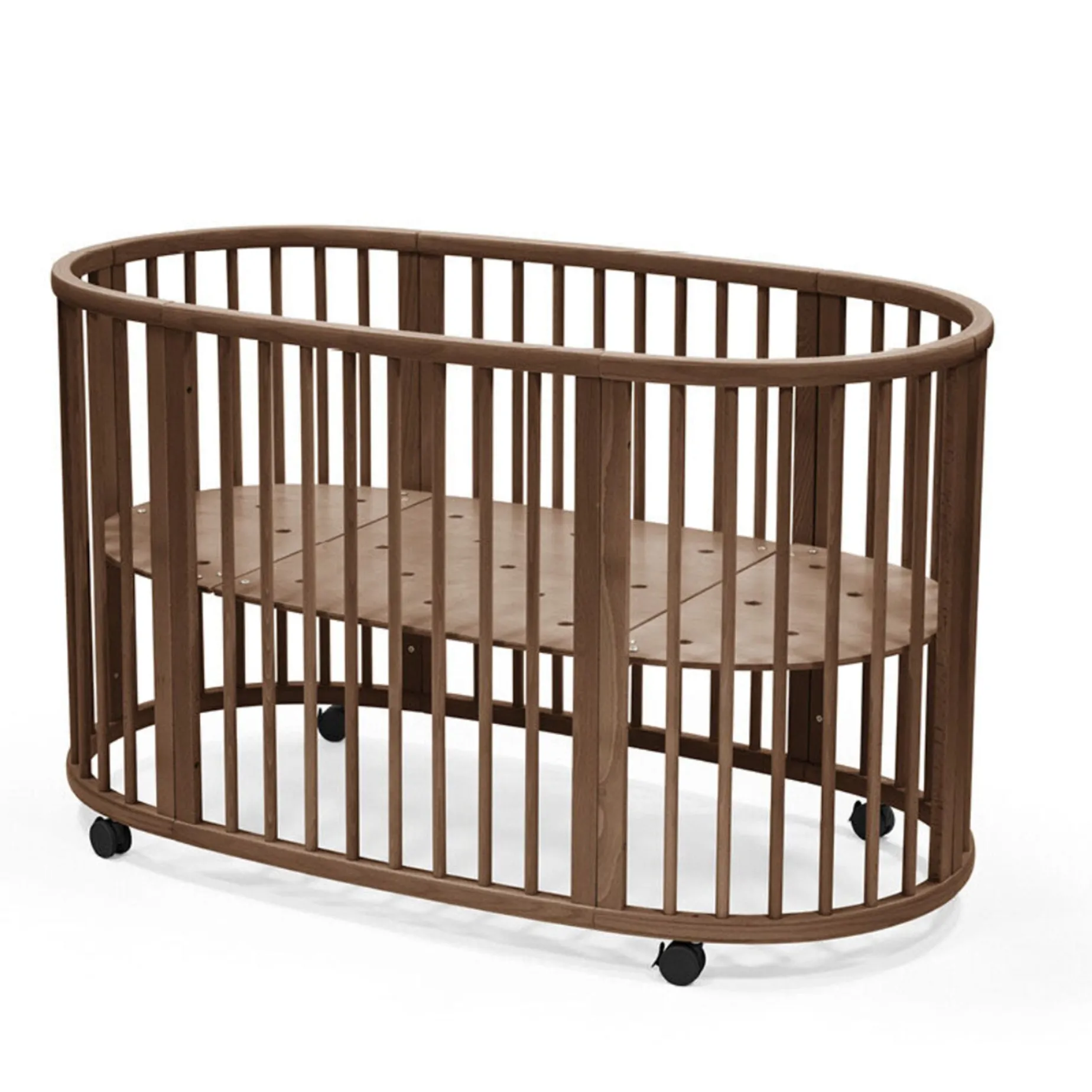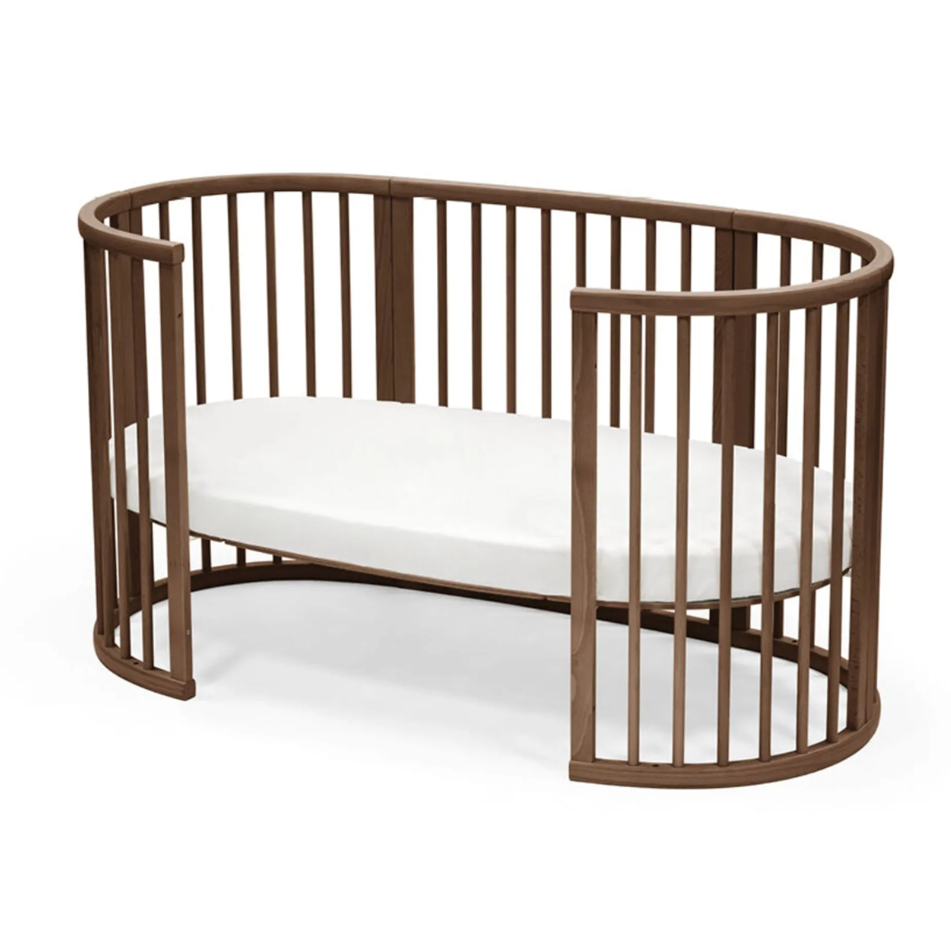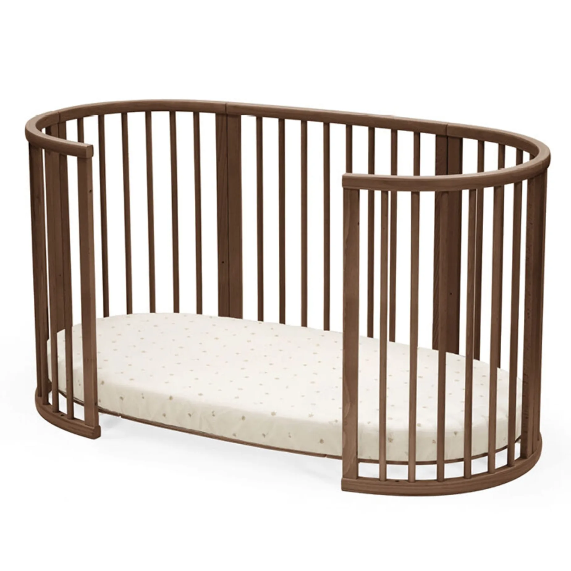 The soft oval design cocoons your baby, offering comfort and familiarity for restful sleep. Stokke® Sleepi™ Bed can be used from birth to 5 years so your child can enjoy their bed throughout childhood. Adjust the mattress height as your child grows and reaches the curious climbing stage. Once your child is old enough to get in and out independently, you can remove the wheels and one side of the bed for easy access, boosting their confidence. The Stokke® Sleepi™ concept is developed with sound sleep and safety in mind. It is compatible with the new firm, breathable Sleepi™ mattress that exceeds the highest safety standards (sold separately). Accessorize with the breathable mesh liner and high-quality textiles. Please note that the Sleepi™ Bed cannot be downsized into a Sleepi™ Mini.