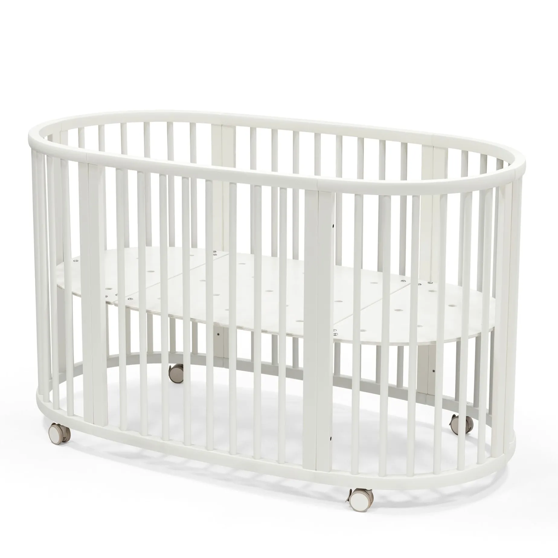 Your baby’s crib is the heart of your nursery. It should be beautiful, functional and above all, safe and soothing for your little one. Made of solid European beech wood, with adjustable height, Stokke® Sleepi™ accommodates the changing needs of your growing child. Soft oval design cocoons your baby offering comfort and familiarity for restful sleep and the sweetest of dreams. Stokke® Sleepi™ Bed can be used from birth to 5 years so your child can enjoy their bed throughout childhood. Adjust the height position of the mattress as your child gets bigger and reaches the curious climbing stage. Once your child is old enough to get in and out of the bed on their own, you can remove the wheels and one side of the bed for easy access. This will boost your child’s independence as well. The Stokke® Sleepi™ concept has been developed with sound sleep and safety in mind. It is available with a new firm and breathable Sleepi™ mattress which exceeds the highest safety standards (sold separately). Accessorize with the breathable mesh liner and high-quality textiles. Stokke® Sleepi™ is FSC®-certified using responsibly sourced wood. FSC is a sustainable forest management solution. With this Stokke® Sleepi™ we help take care of the world’s forests.