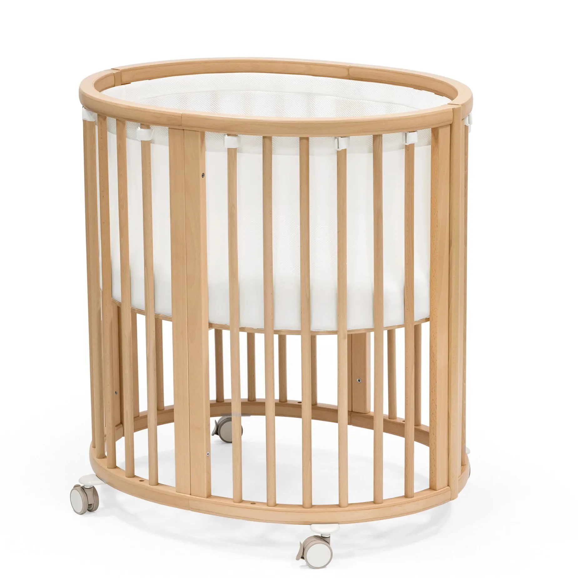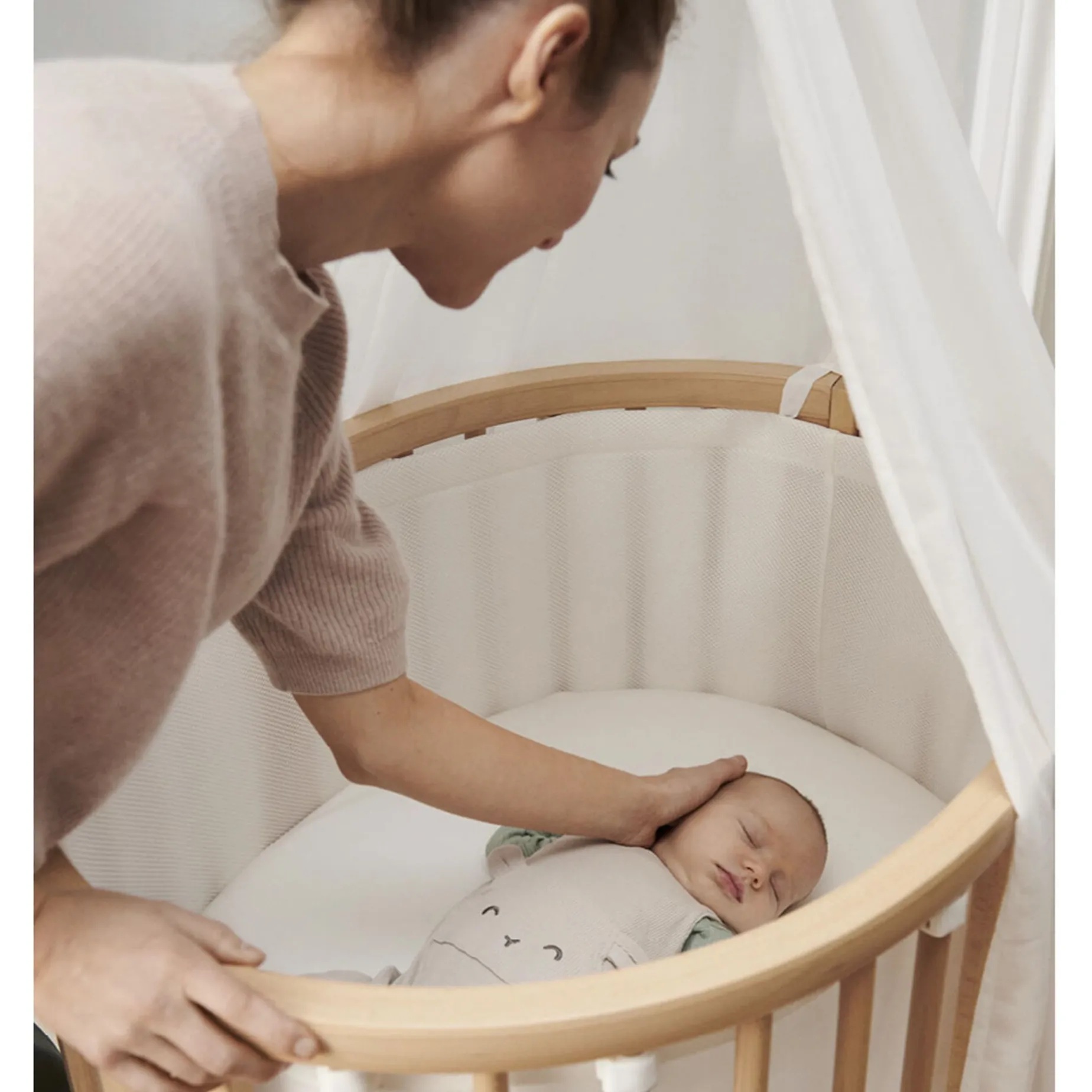 The Stokke® Sleepi™ Mini is the ideal first bed for your newborn. Creating a nest-like environment, it helps baby feel snug and secure. Soft oval design cocoons your baby offering comfort and familiarity for restful sleep and the sweetest of dreams. The drape rod and canopy make it a truly elegant addition to any nursery. Lockable swivel wheels can be used to rock your baby gently to sleep and makes your crib easy to move from room to room. At only 67 cm / 26,4 in inches wide, it’s amazingly space efficient, making it ideal for petite nurseries. The Stokke® Sleepi™ concept has been developed with sound sleep and safety in mind. It is available with a new firm and breathable Sleepi™ mattress which exceeds the highest safety standards. Accessorize with the breathable mesh liner and high-quality textiles. Stokke® Sleepi™ is FSC®-certified using responsibly sourced wood. FSC is a sustainable forest management solution. With this Stokke® Sleepi™ we help take care of the world’s forests.
