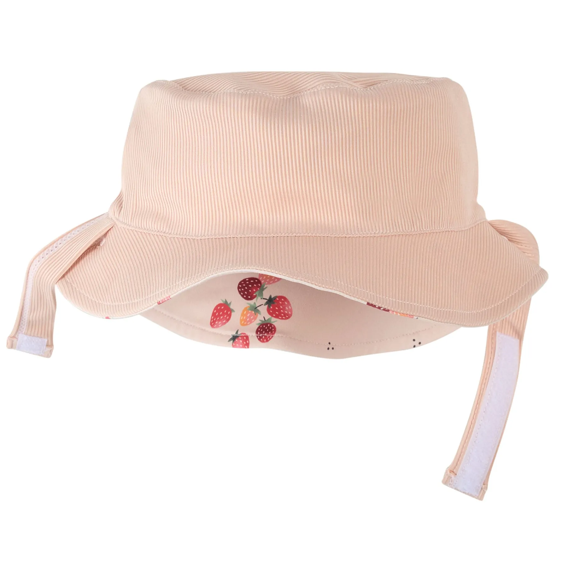 Sweet and sassy, this reversible sun hat features an all-over Berries print on one side and a plain blush pink on the other – giving her the freedom to choose depending on her outfit or mood. The wide brim protects her face from the sun and shades her eyes when the sun feels too bright. Lightweight and breathable, the hat keeps her cool throughout the day, and the under-chin fastening keeps it in place on breezy beach strolls.