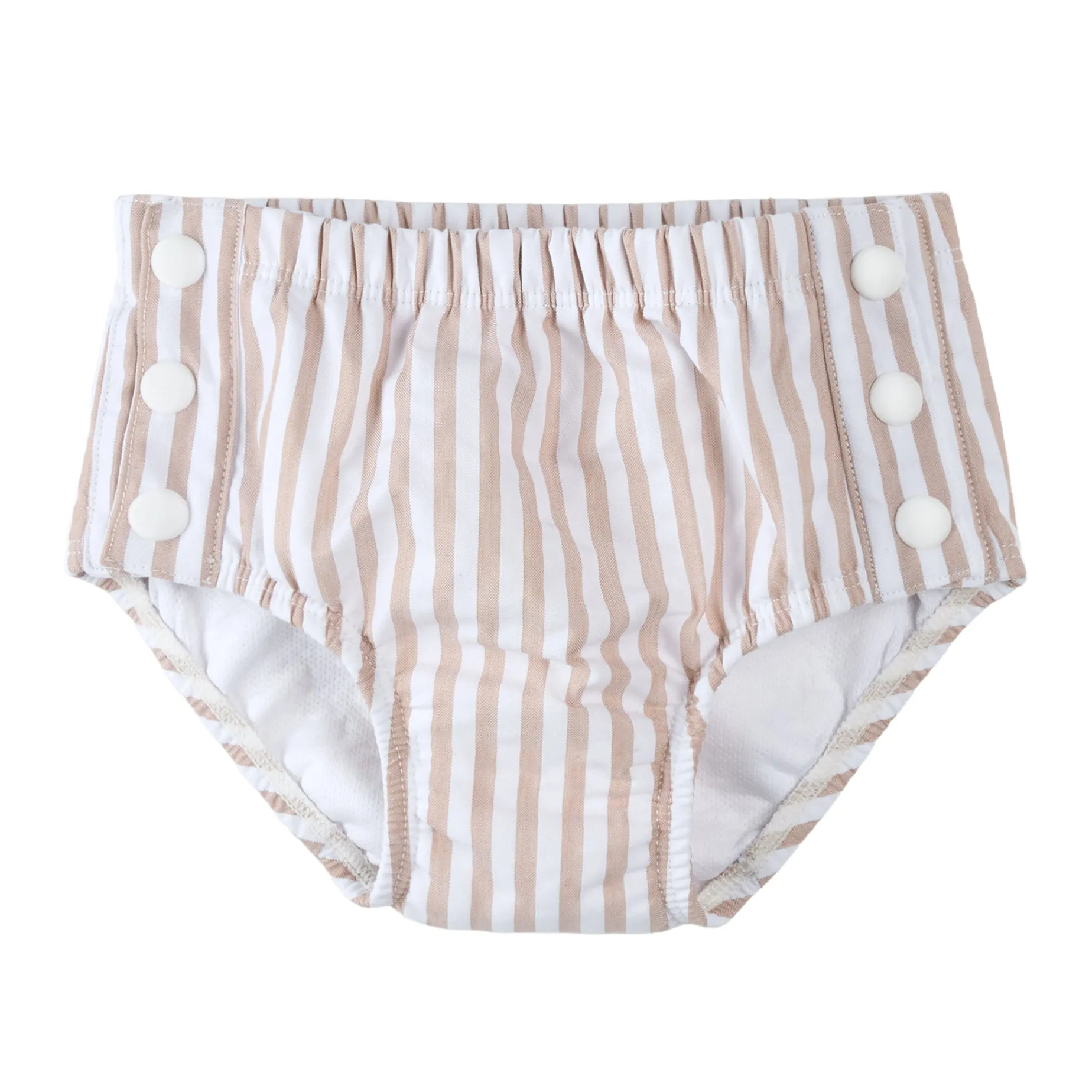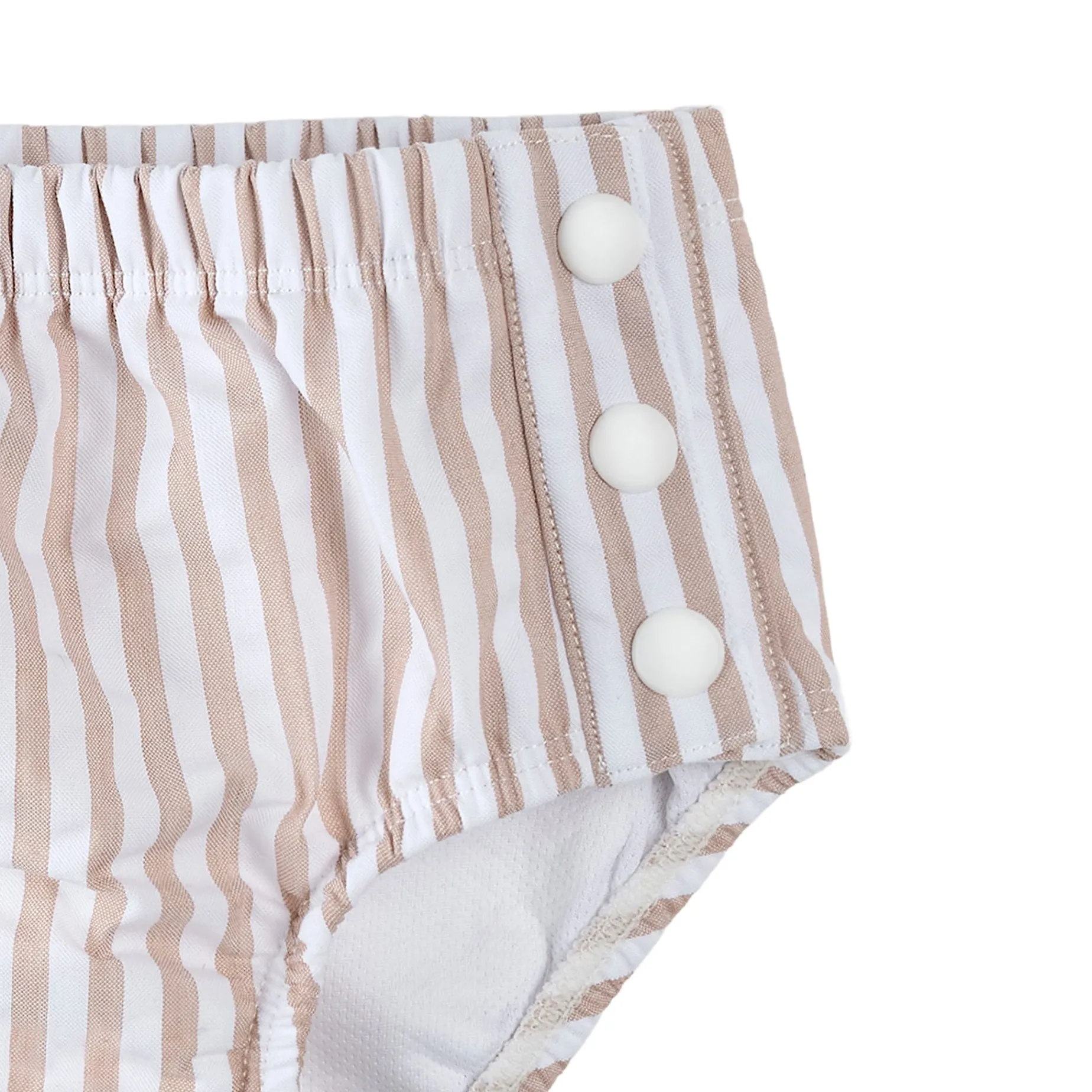 Elasticated legs with snap buttons on each side