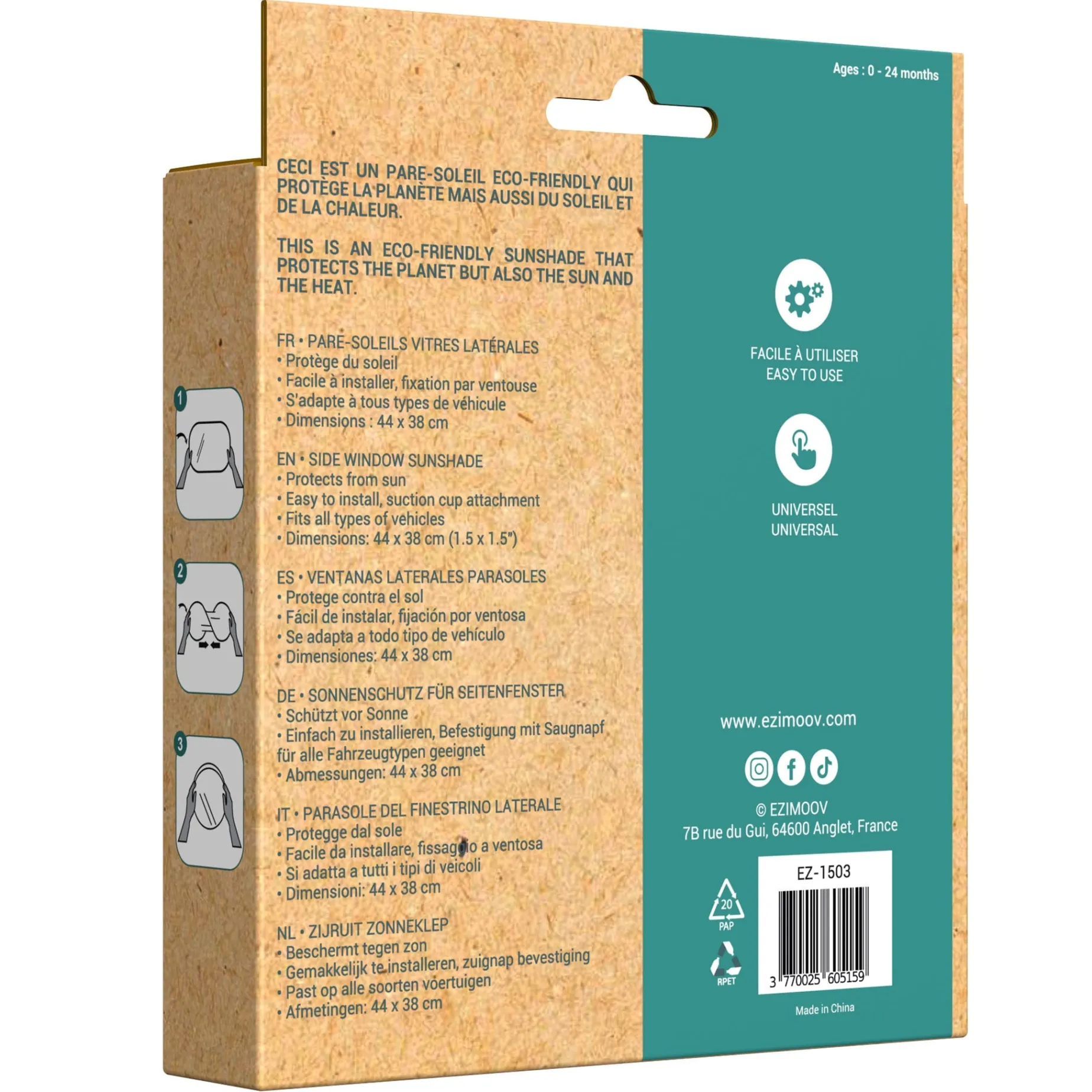 EZI SUN STOPPERS is a car sun shade that provides up to 97% sun and UV protection . Easily protect your child from the sun with this suction cup car sunshade. Easy to install, just place the sunshade over your side windows and press down with your hand.
