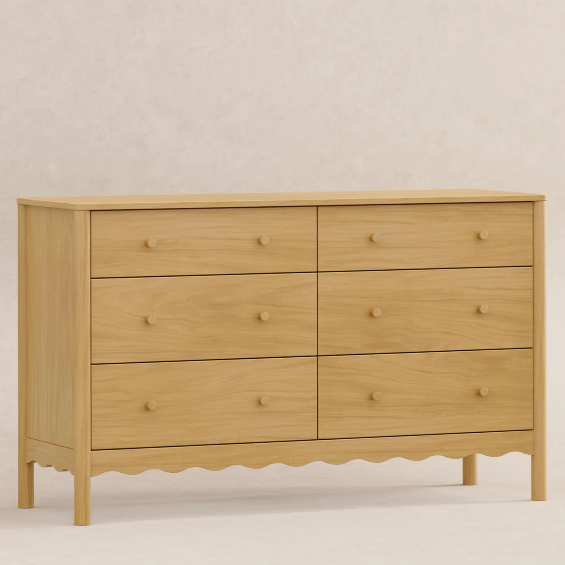 PLAYFUL DETAILS: A perfect balance of modern and playful design, this dresser is crafted with rounded posts and wavy edges, available in playful finishes to coordinate with any modern nursery palette. Option to add a removable changing tray to convert to a changing table for the early years (#M0619 sold separately).