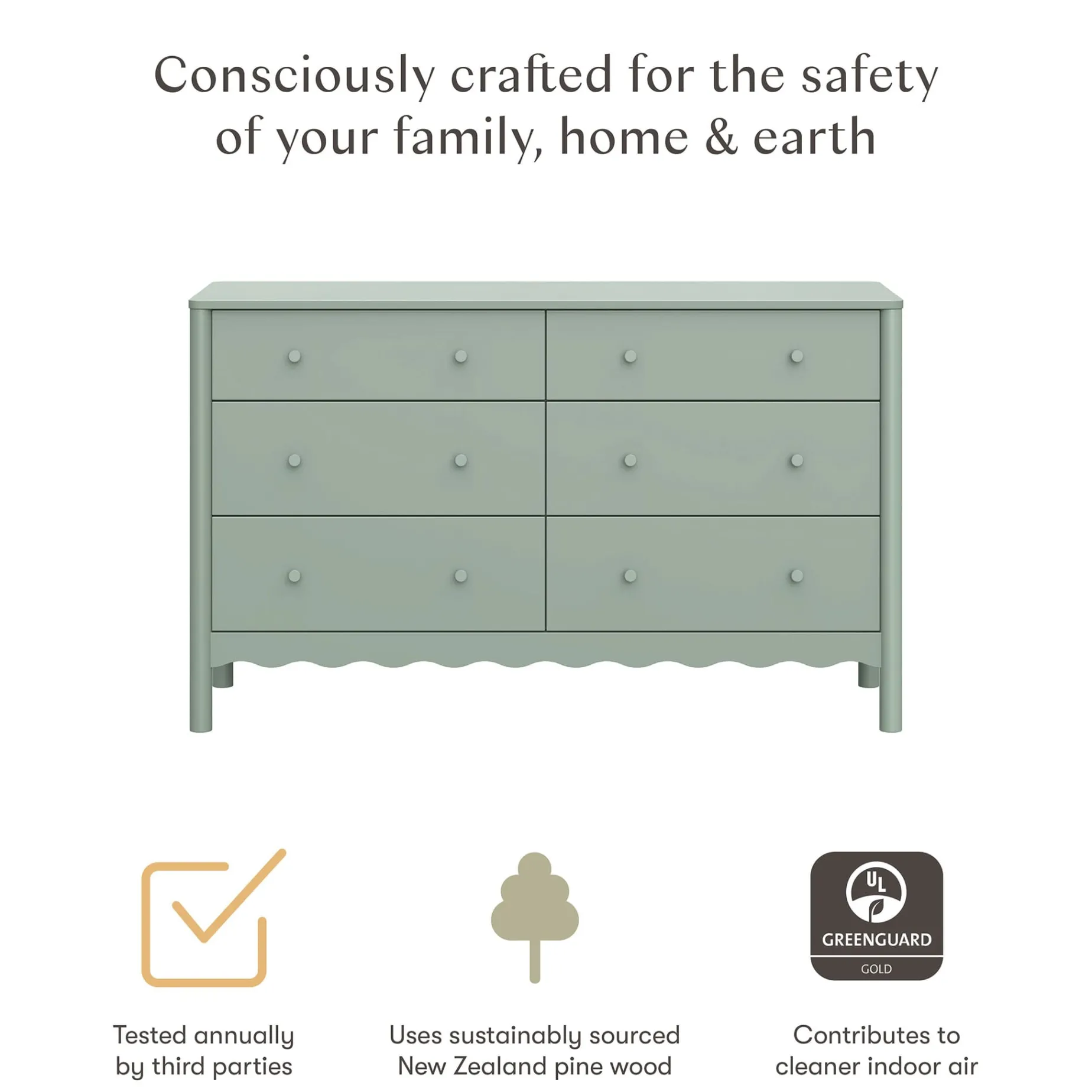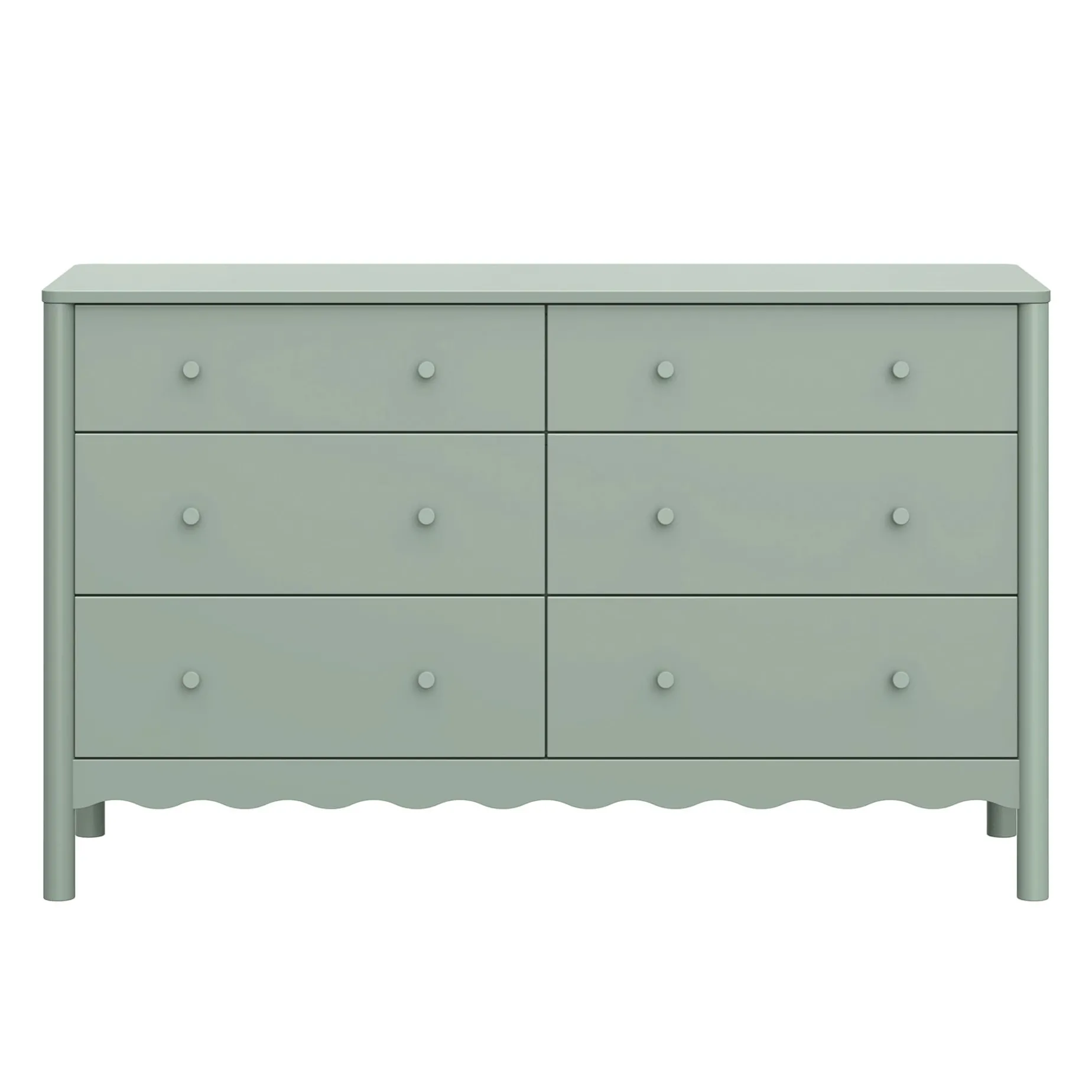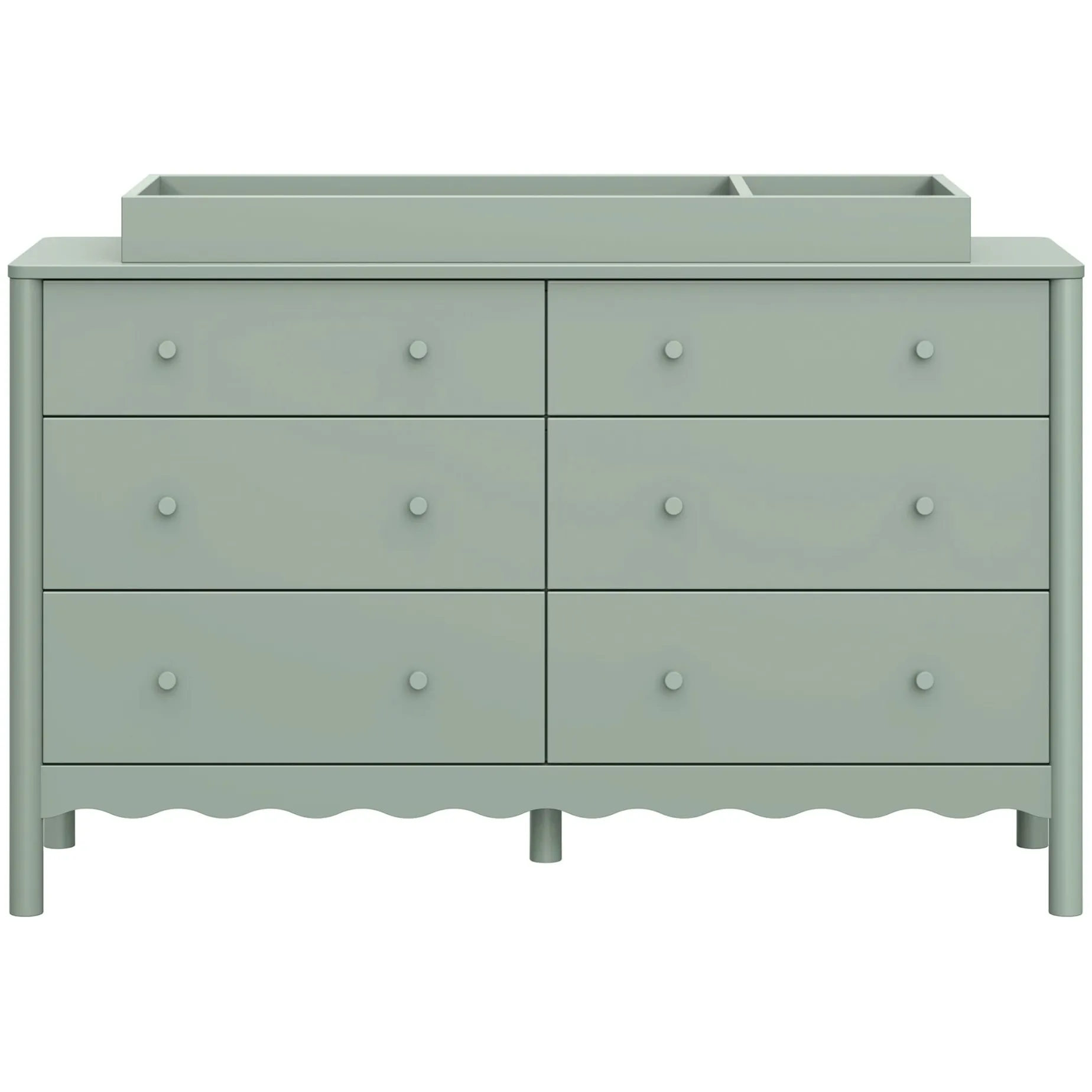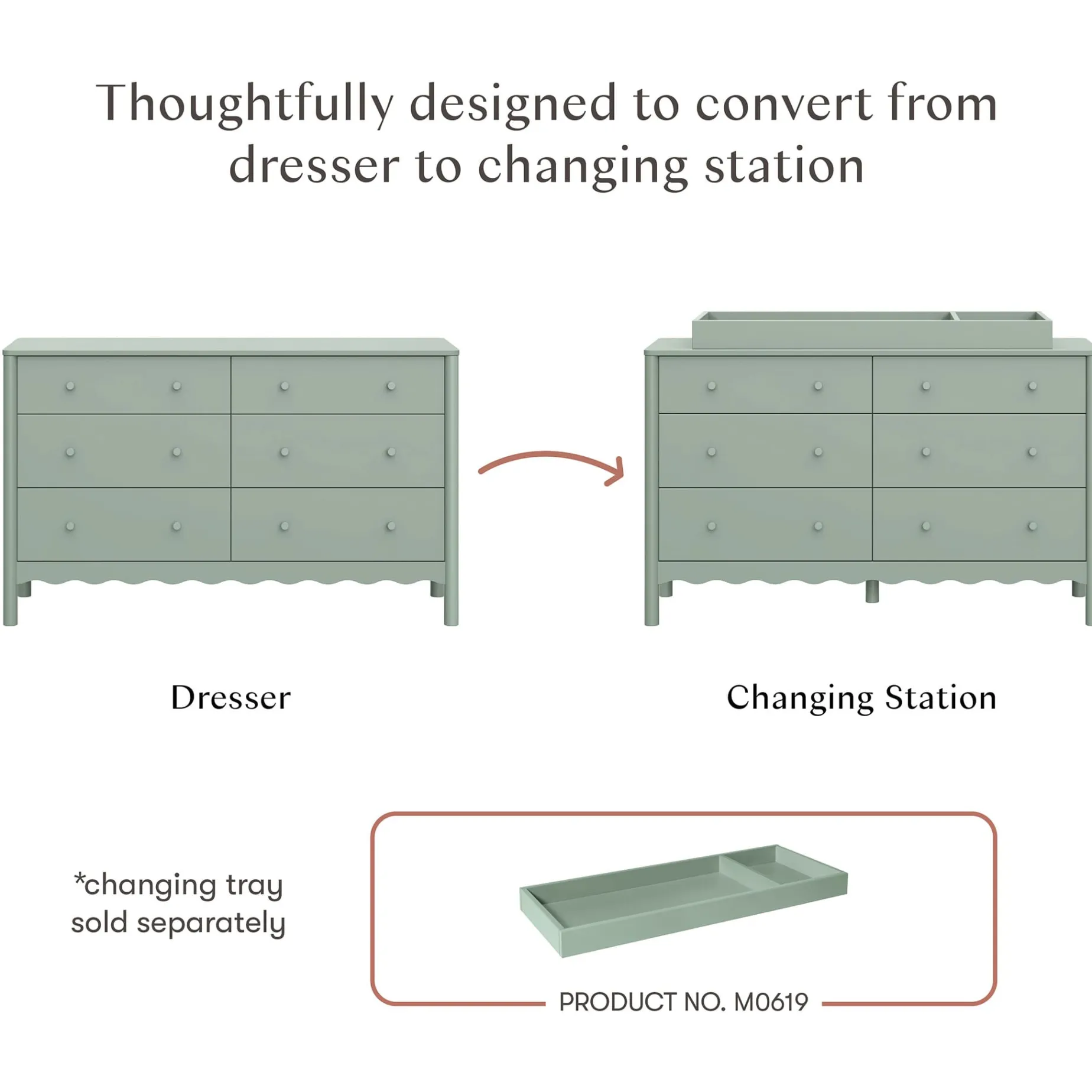 PLAYFUL DETAILS: A perfect balance of modern and playful design, this dresser is crafted with rounded posts and wavy edges, available in playful finishes to coordinate with any modern nursery palette. Option to add a removable changing tray to convert to a changing table for the early years (#M0619 sold separately).