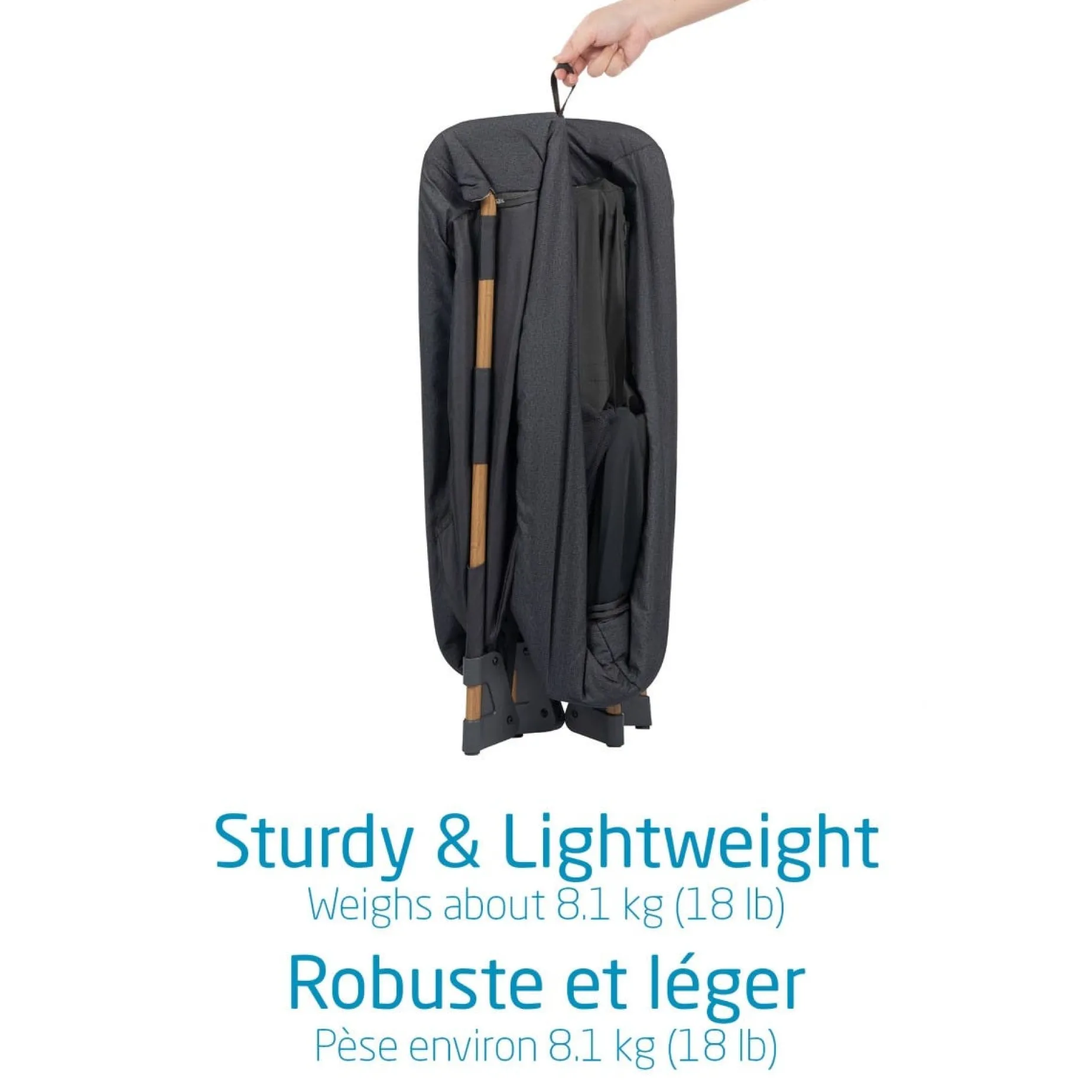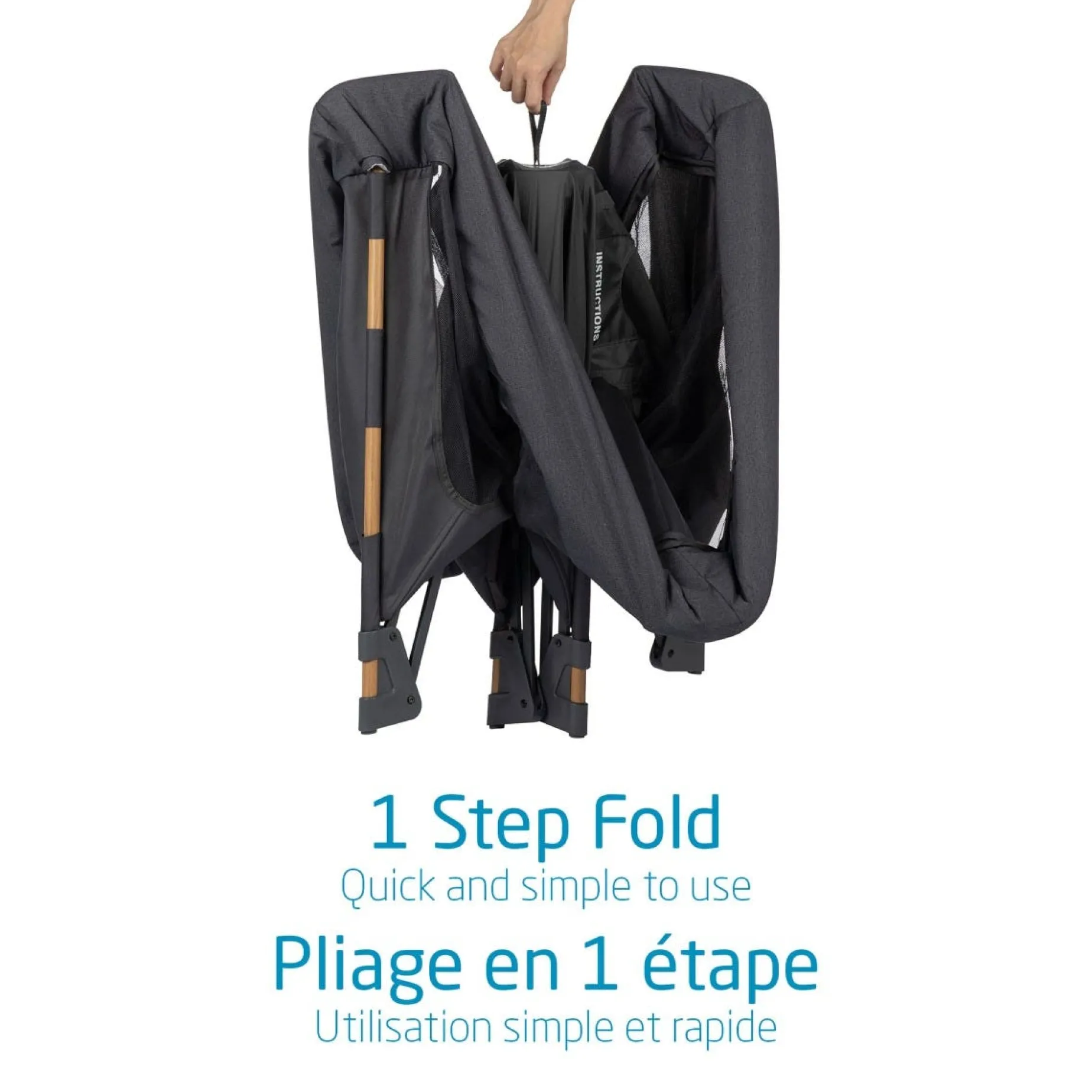 Everything about Swift is designed for speed and ease of use. Its smooth one-step fold is so quick and easy, you can even do it one-handed. One swift action and you can simply get on with your busy day. Swift grows with your baby from newborn to toddler. So instead of buying three separate portable products (a bassinet, travel nap space (supervised) and play yard), the Swift is all three, stylishly rolled into one.