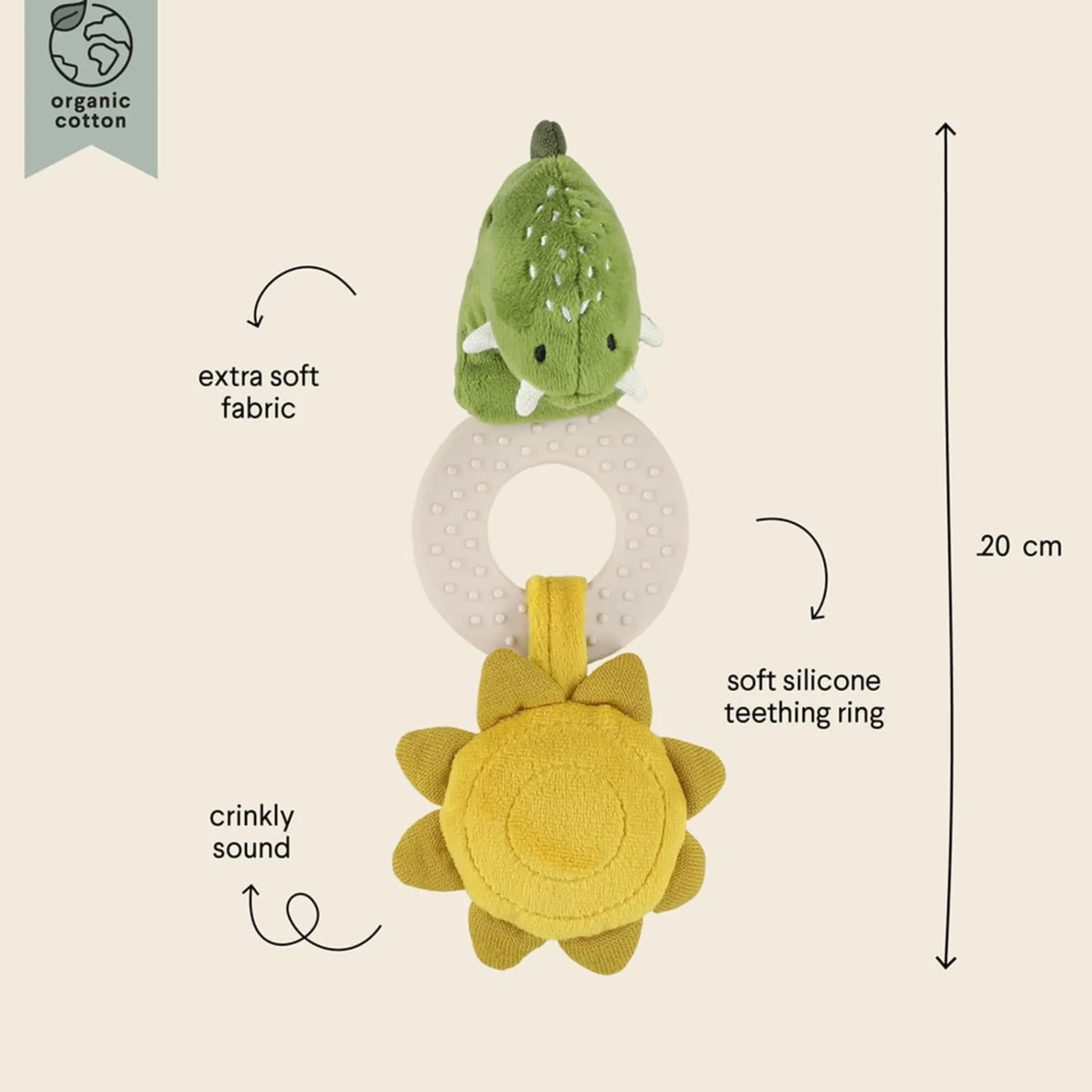 Composition: organic cotton – recyled polyester – teether – crinkle paper