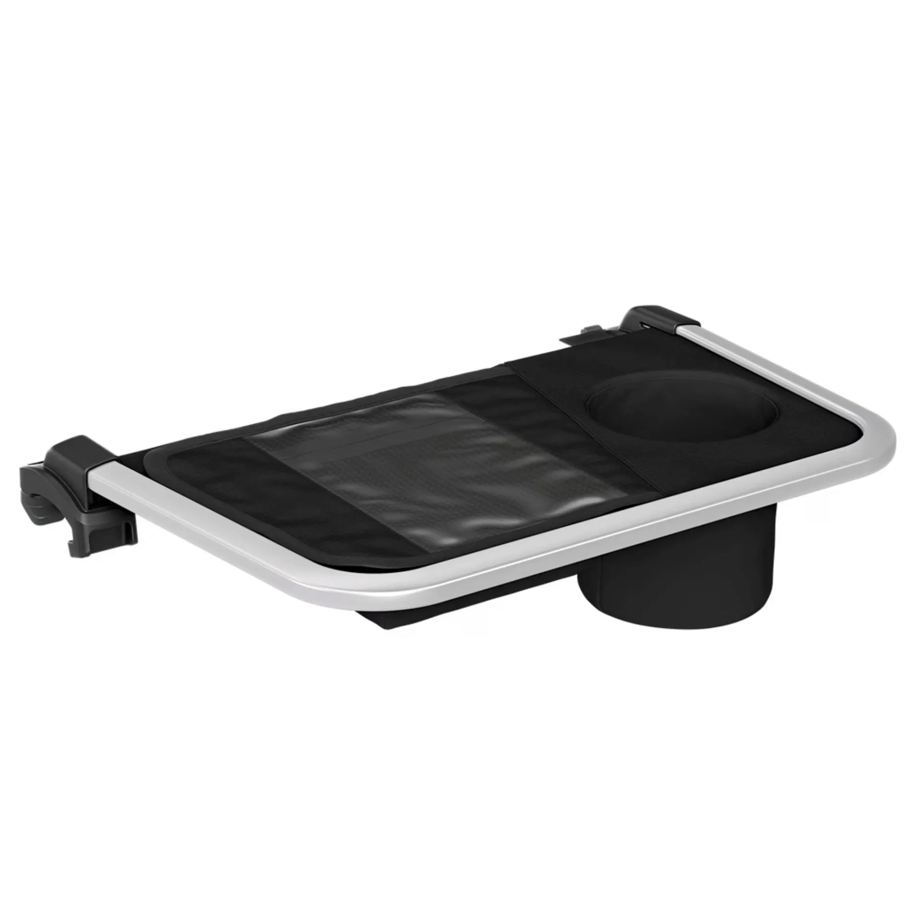 Handlebar storage bag with zippered pocket and integrated cup holder. Compatible with Thule Chariot and Thule Urban Glide models.