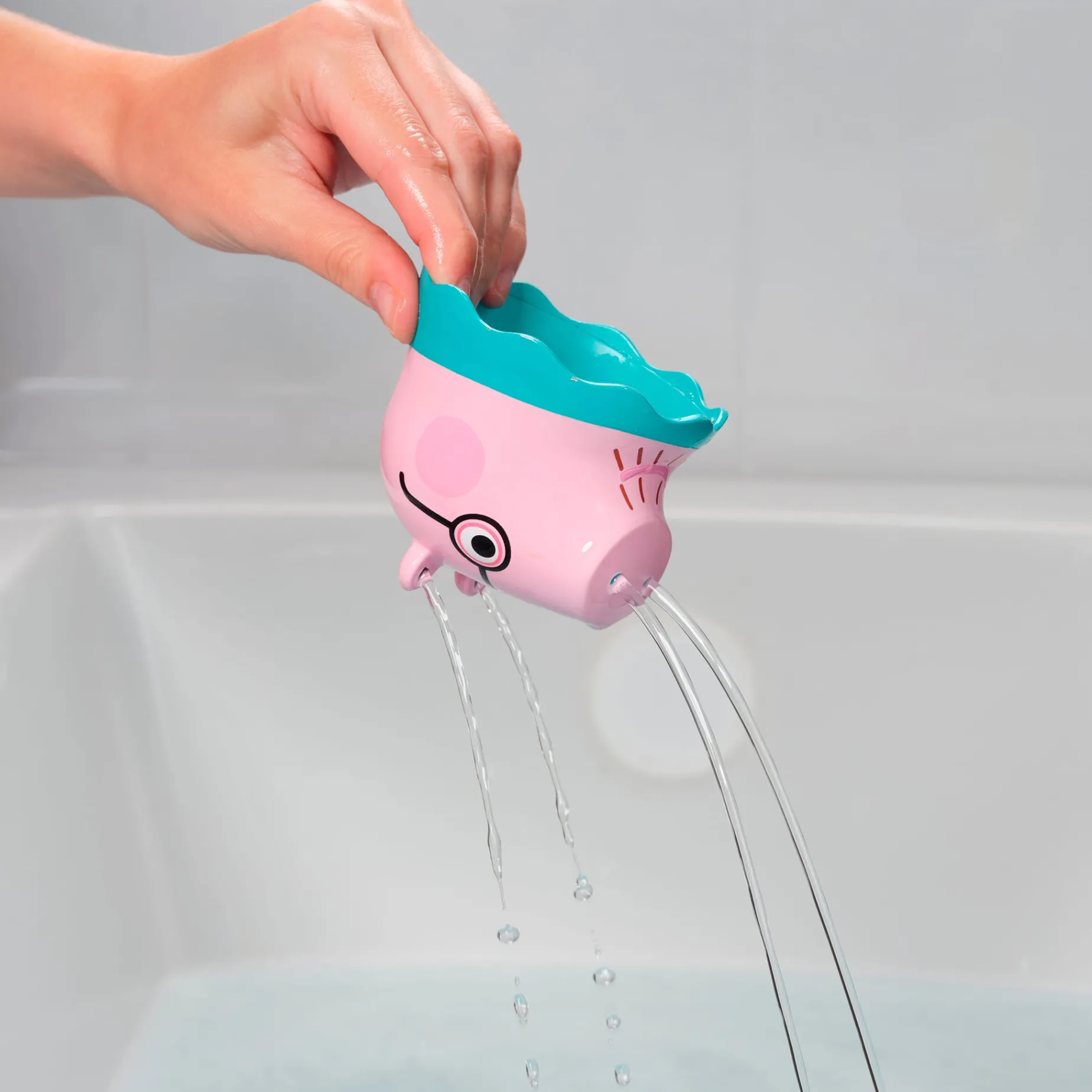 -Bath Toys Too! Daddy Pig, Mummy Pig and Peppa Pig can be used as water pourers – each has top and bottom halves that sprinkle water different ways