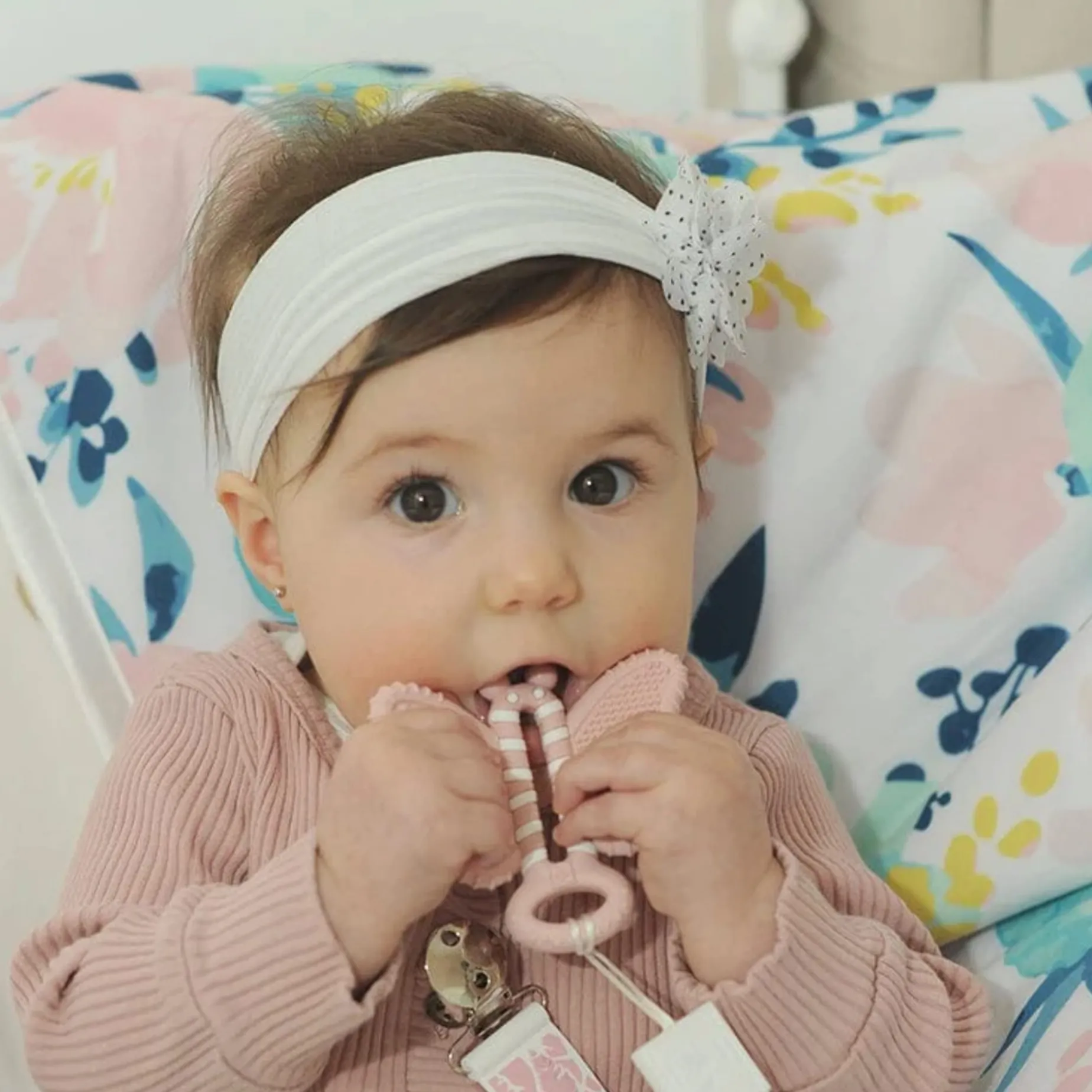 Tailor-made for baby’s first teeth, this unique teether-brush provides sensory satisfaction to baby’s sensitive gums, lips and tongue. Perfectly sized for baby’s smaller hands, the handle was carefully created as a teething ring for additional teething and cleaning satisfaction.