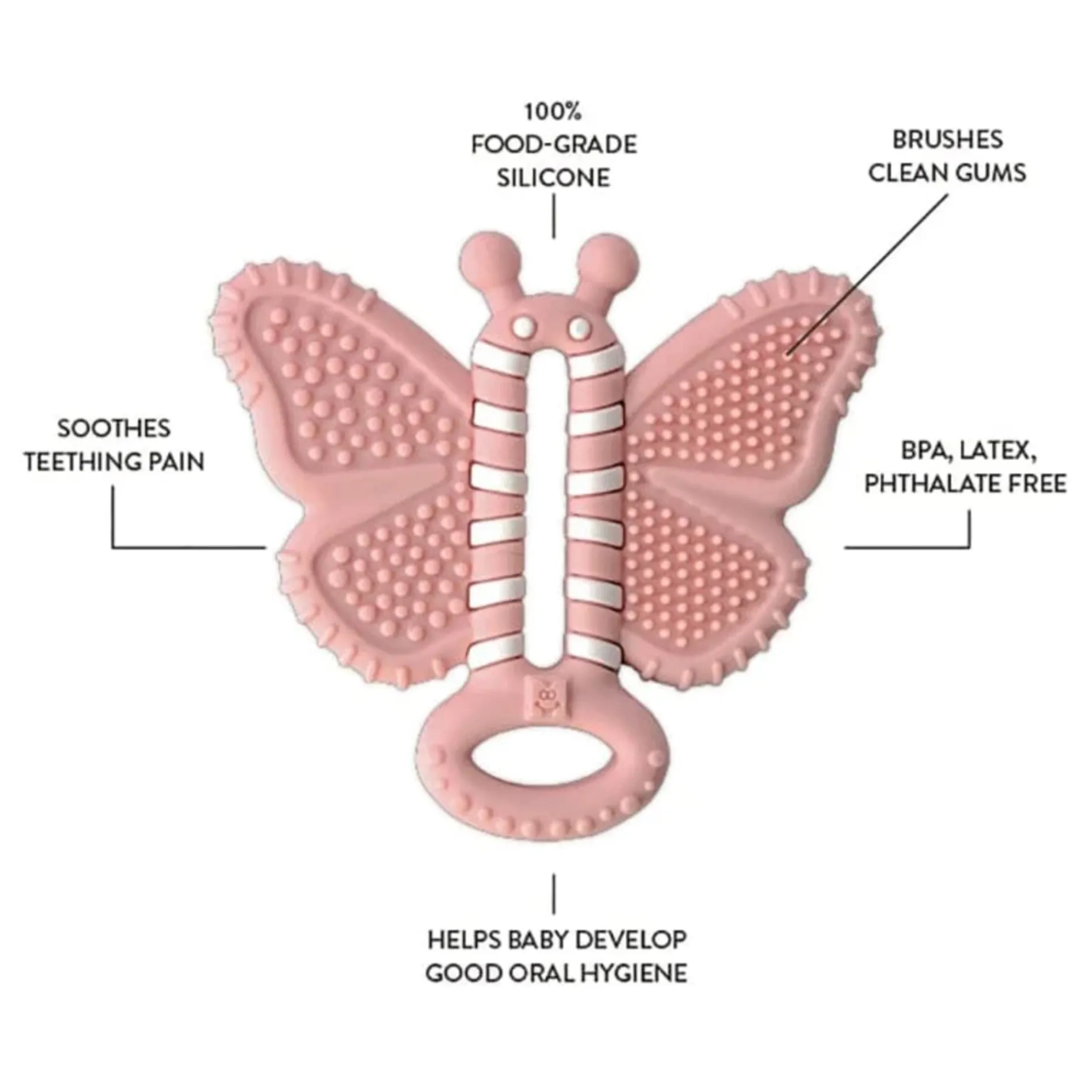 The Teether Toothbrush is designed for babies from 3-7 months but can be used up to 12 months of age. The Teether Toothbrush is 100% food-grade silicone and is BPA, Phthalate, and Latex-free.