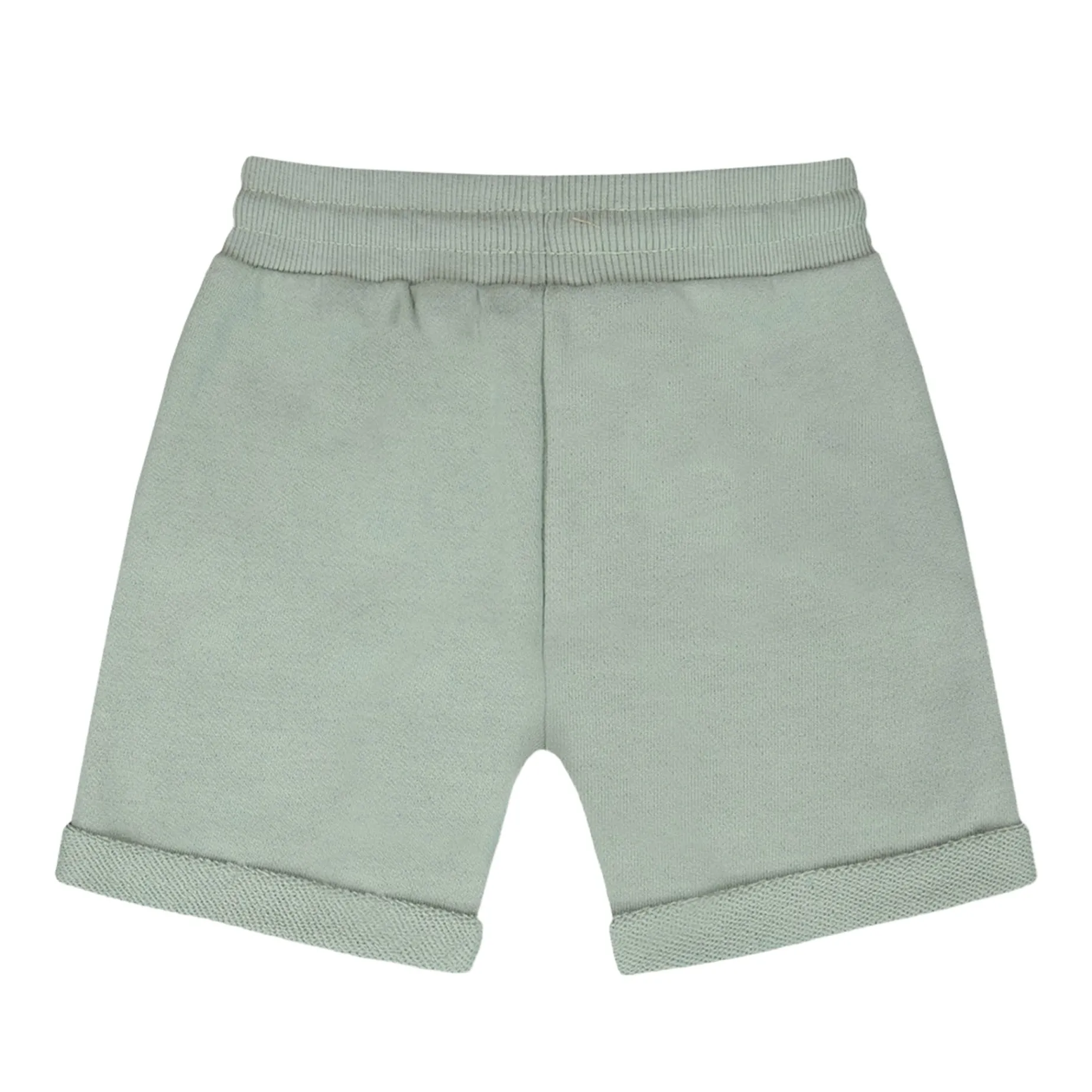 The French terry shorts in beige are perfect for everyday adventures. Made from a soft cotton blend, these bottoms feature a ribbed elastic waistband with drawstring, discreet side slit pockets, and folded cuffs for a casual finish. Part of our “Trail Buddies” collection, they combine comfort and style for active little ones.