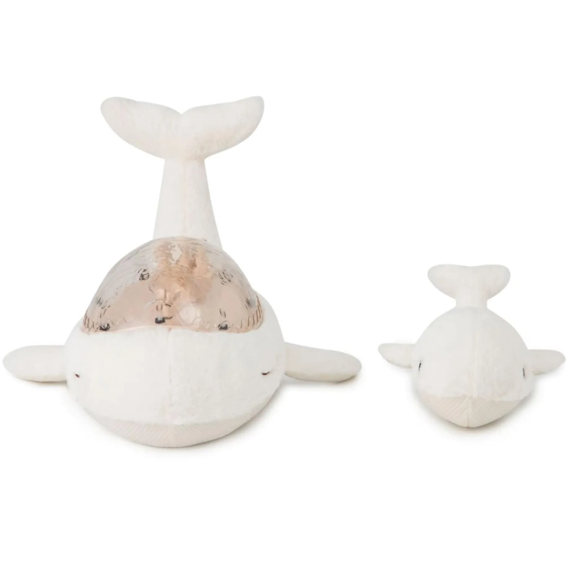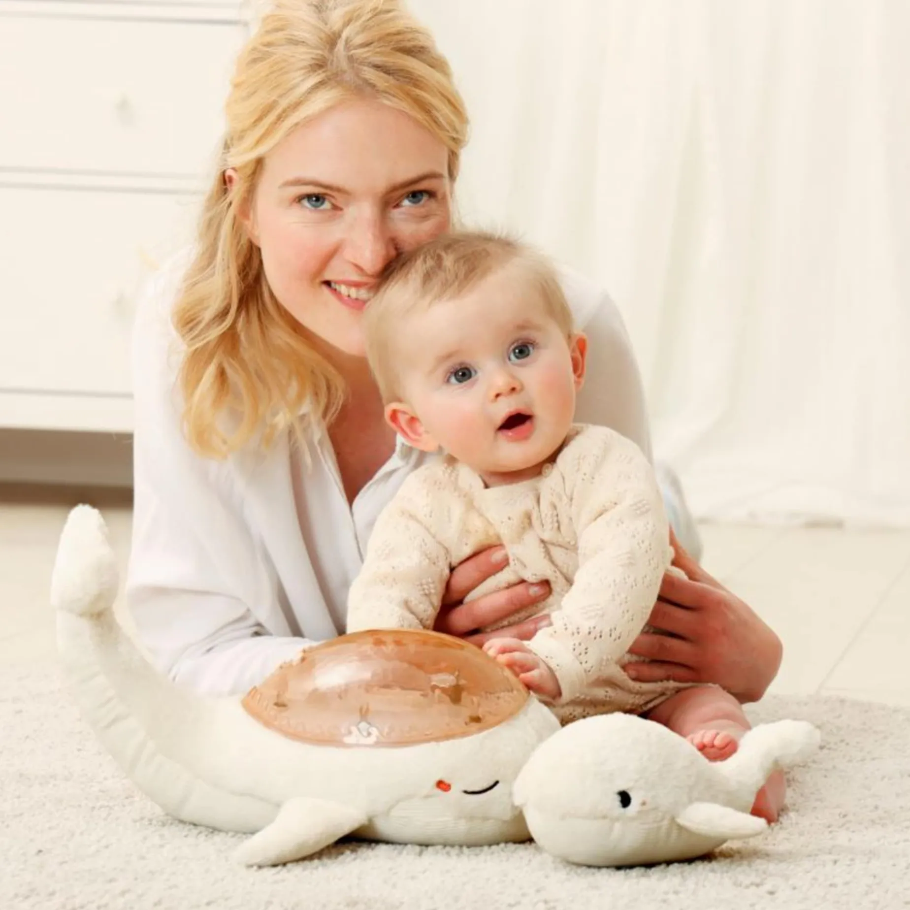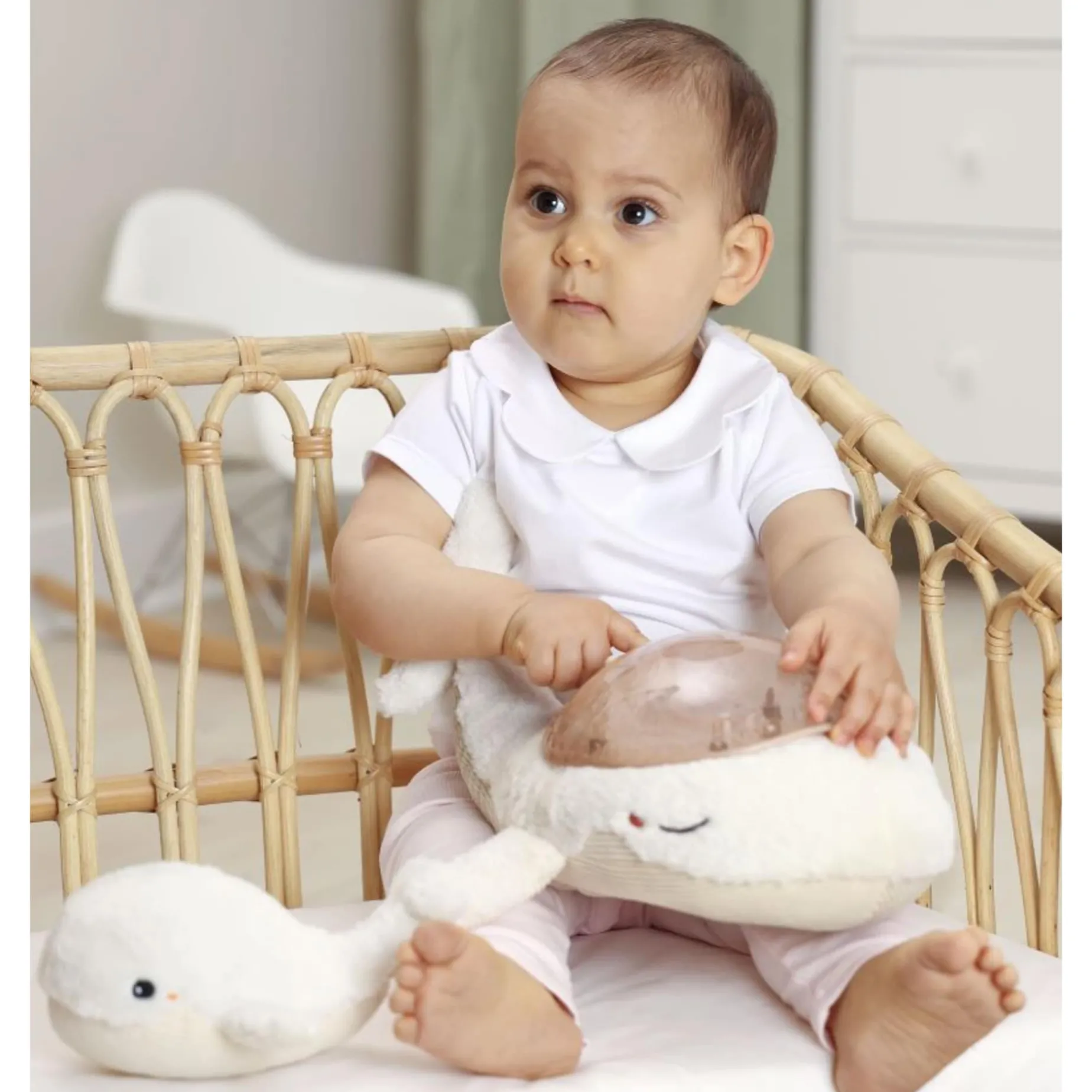 This pretty whale diffuses a soft light and projects on the ceiling of the room the waves of the ocean in movement thanks to a unique and patented mechanism. A marine melody and the sound of the waves (white noise) will soothe the little ones to take them on the way to sleep. Its plush material is ultra-soft.