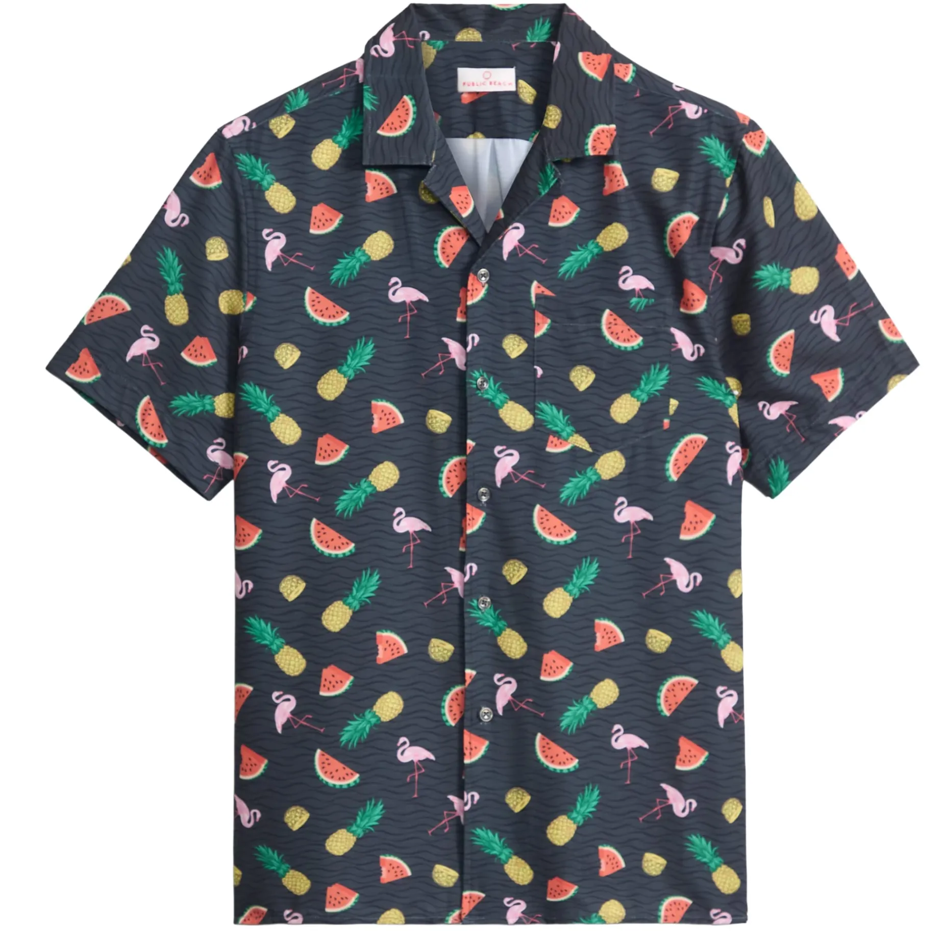 Turn up the heat with the TROPICAL TANGO T-shirt from PUBLIC BEACH. Decorated with playful prints of pineapples, flamingos, and watermelons, this T-shirt instantly transports you to vacation mode wherever you go. Lightweight, breathable, and easy to style, it’s perfect for sunny days, beach getaways, and relaxing by the pool. Complete your summer look with matching swim shorts.