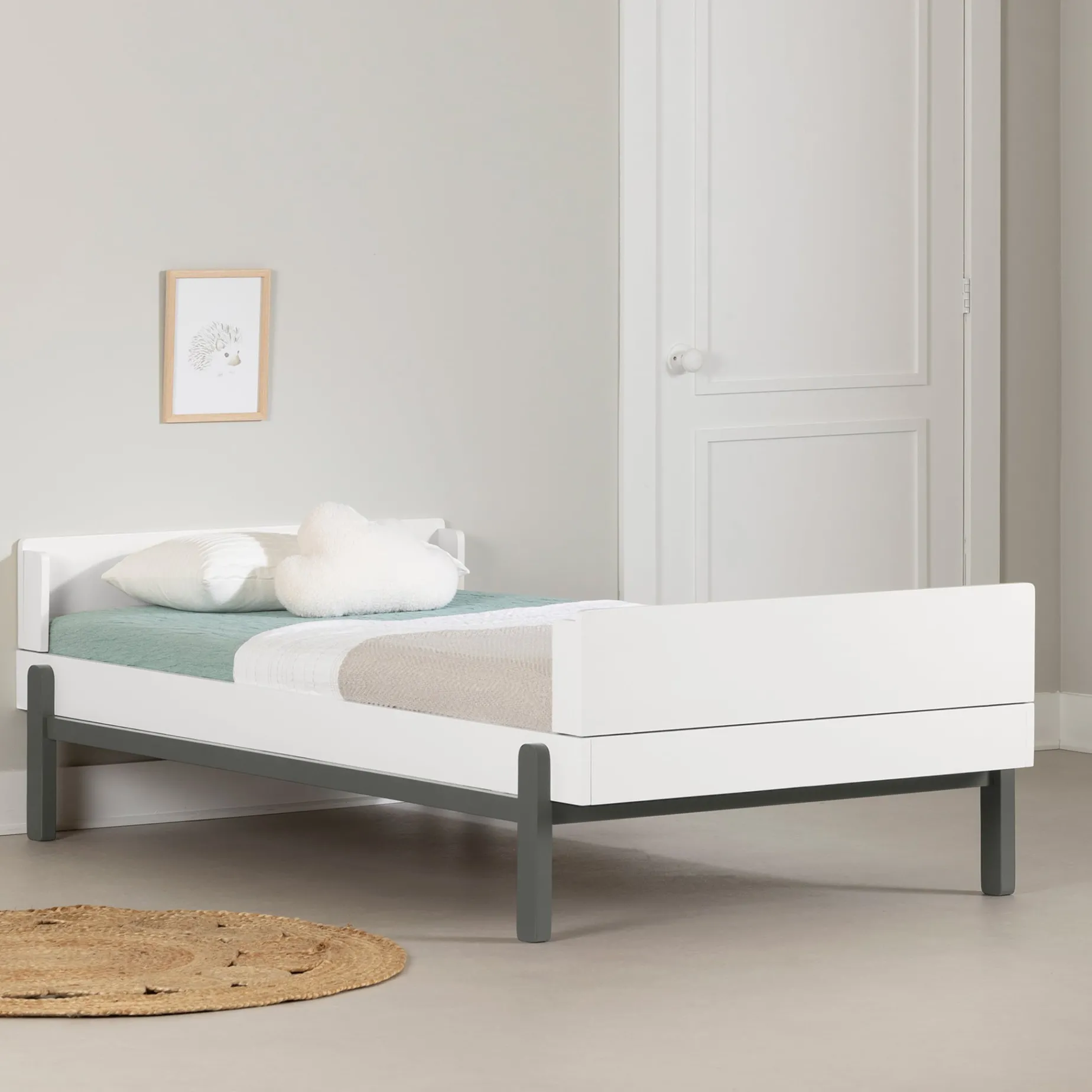 When it comes to furnishing your child’s room, you can’t go wrong with this Scandinavian-inspired full bed! Simple, sturdy and unisex, it is very versatile and can suit any type of decor. The frame made from a combination of rubberwood and MDF fits mattresses that are 37 ½ to 38 ½ inches wide and 75 inches long maximum. Simply place the mattress on the wood laminate slats and you’re done! No need for a box spring! Thanks to these durable materials, your little darling’s bed will be able to accompany him throughout his growth.