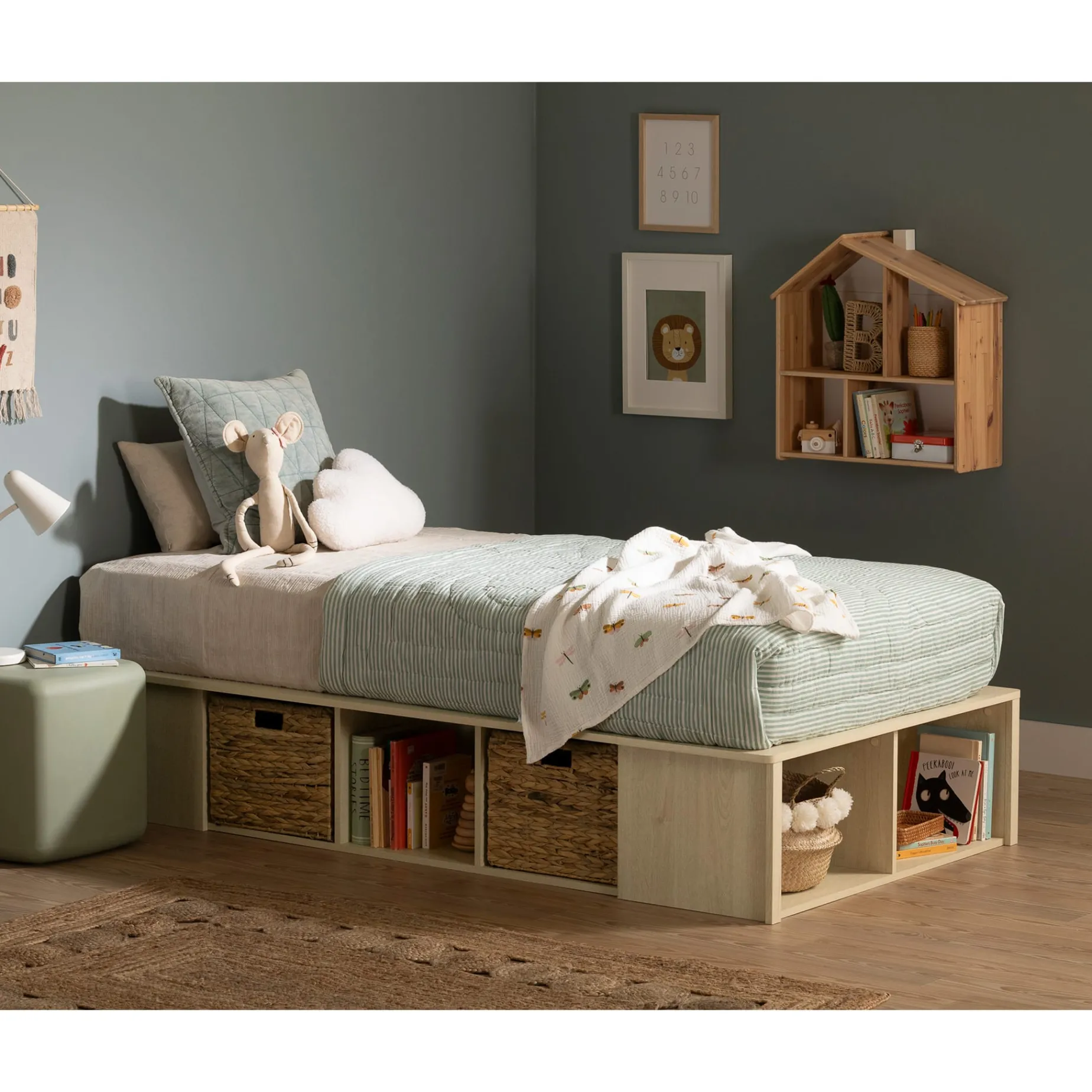To help with organization, and offer closed storage compartments, 2 wicker baskets are included with the bed. They are designed to fit perfectly into the open spaces. This allows you to play with multiple configurations. For example, you can use the drawers to store clothes, books or shoes.