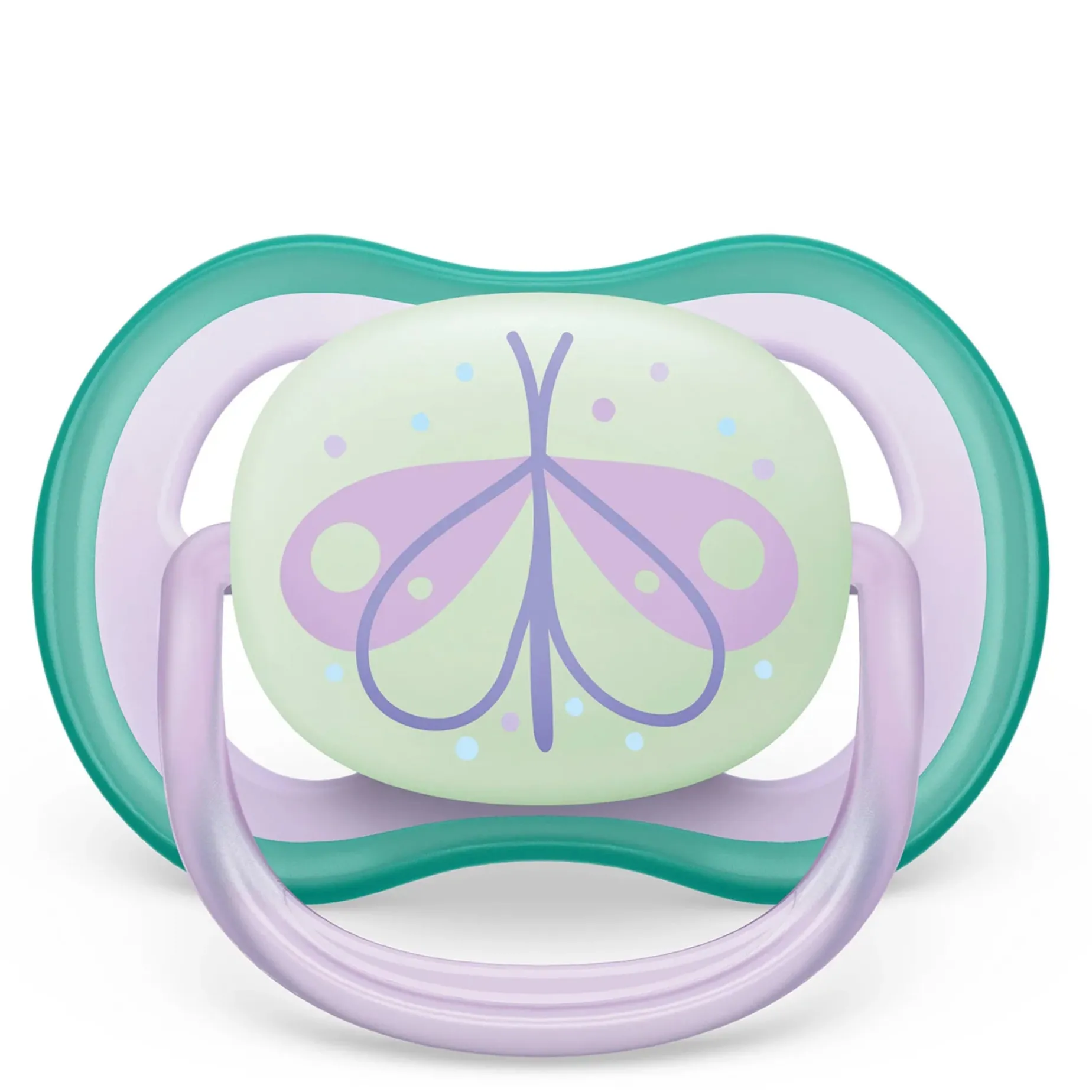 The Philips Avent Ultra Air pacifier for babies 0-6 months has a long lasting glow, so it’s easy to find in the dark. It’s designed with a lightweight, breathable shield for baby’s sensitive skin.