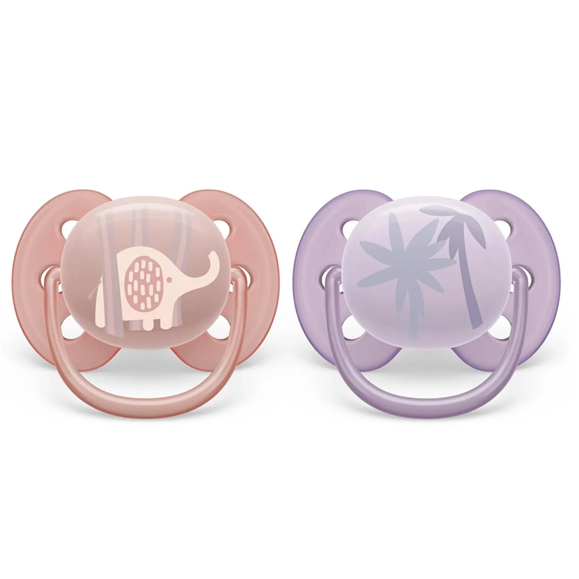 The Philips Avent Ultra Soft pacifier for babies 0-6 months is designed with a soft, flexible shield for fewer skin marks and less skin irritation. This makes it a more comfortable choice for baby.