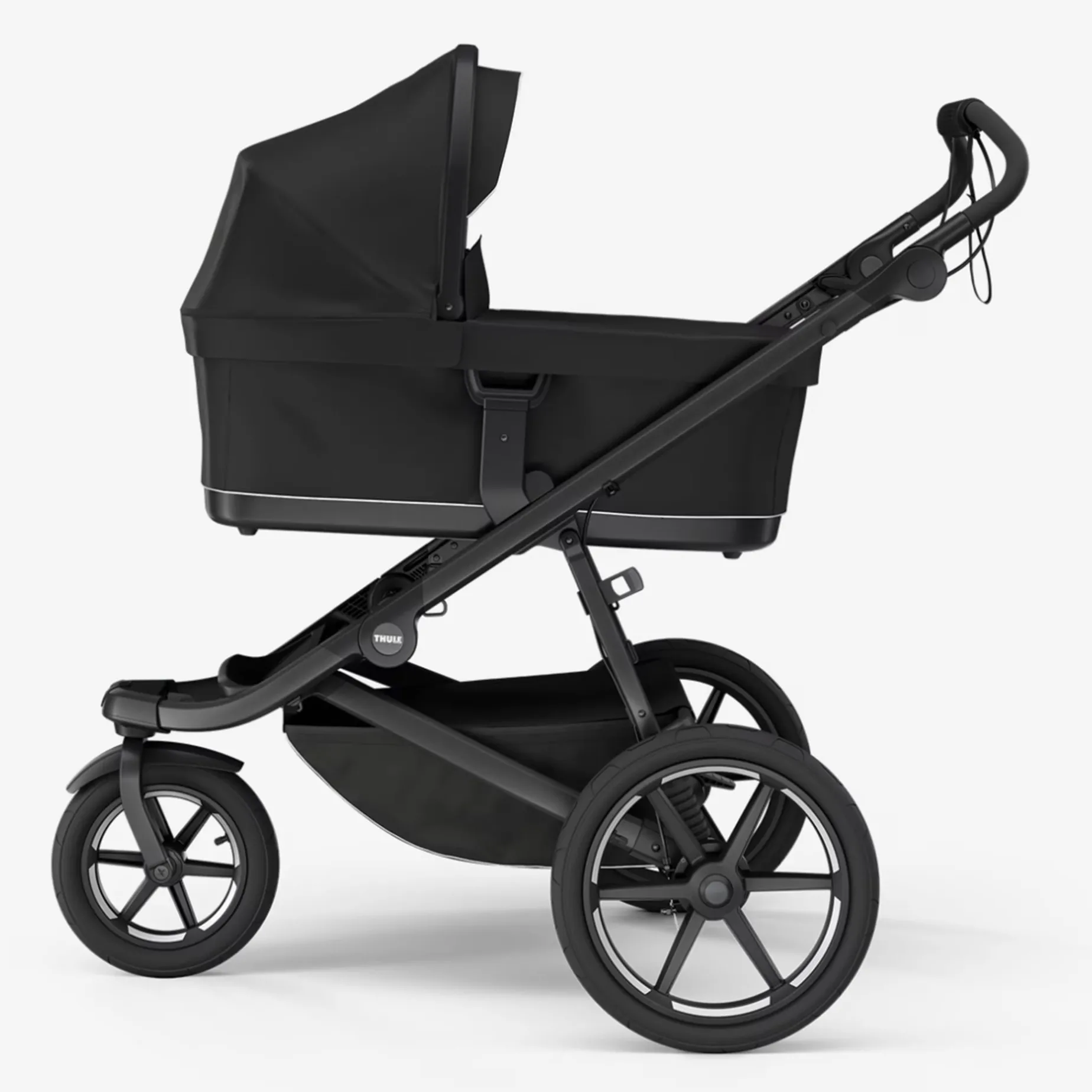 The Thule Urban Glide 3 is the iconic full-size all-terrain stroller, perfect for newborns and toddlers. Updated with a magnetic buckle for quick and secure access, enhanced comfort features, an integrated leg rest, an upright and comfortable seat with adjustable recline, and a ventilated canopy for all-day comfort—anywhere you go.Features:-Ultimate all-terrain stroller with an iconic lightweight design and large air-filled tires for unmatched maneuverability.-Superior comfort for the child with full canopy coverage, ventilation, an integrated leg rest, and a comfortable seat with adjustable recline.-Smooth twist brake with integrated hand brake for gentle and secure control.Specifications:Product Dimensions (L × W × H): 104 × 69 × 116 cm / 40.9 × 27.2 × 45.7 in.Folded Dimensions (L × W × H): 88 × 58 × 31 cm / 35 × 23 × 12 in.Colors: Black (10101972) / Medium Blue (10101973) / Nutria (10101974).Product Weight: 11.9 kg / 26.2 lb.Stroller Weight Capacity: 34 kg / 75 lb.Maximum Child Weight: 22 kg / 48.5 lb.Materials: Aluminum frame, steel and nylon components, and polyester fabric.Discover the Thule Urban Glide 3 – where versatility, comfort, and style come together for the ultimate stroller experience.