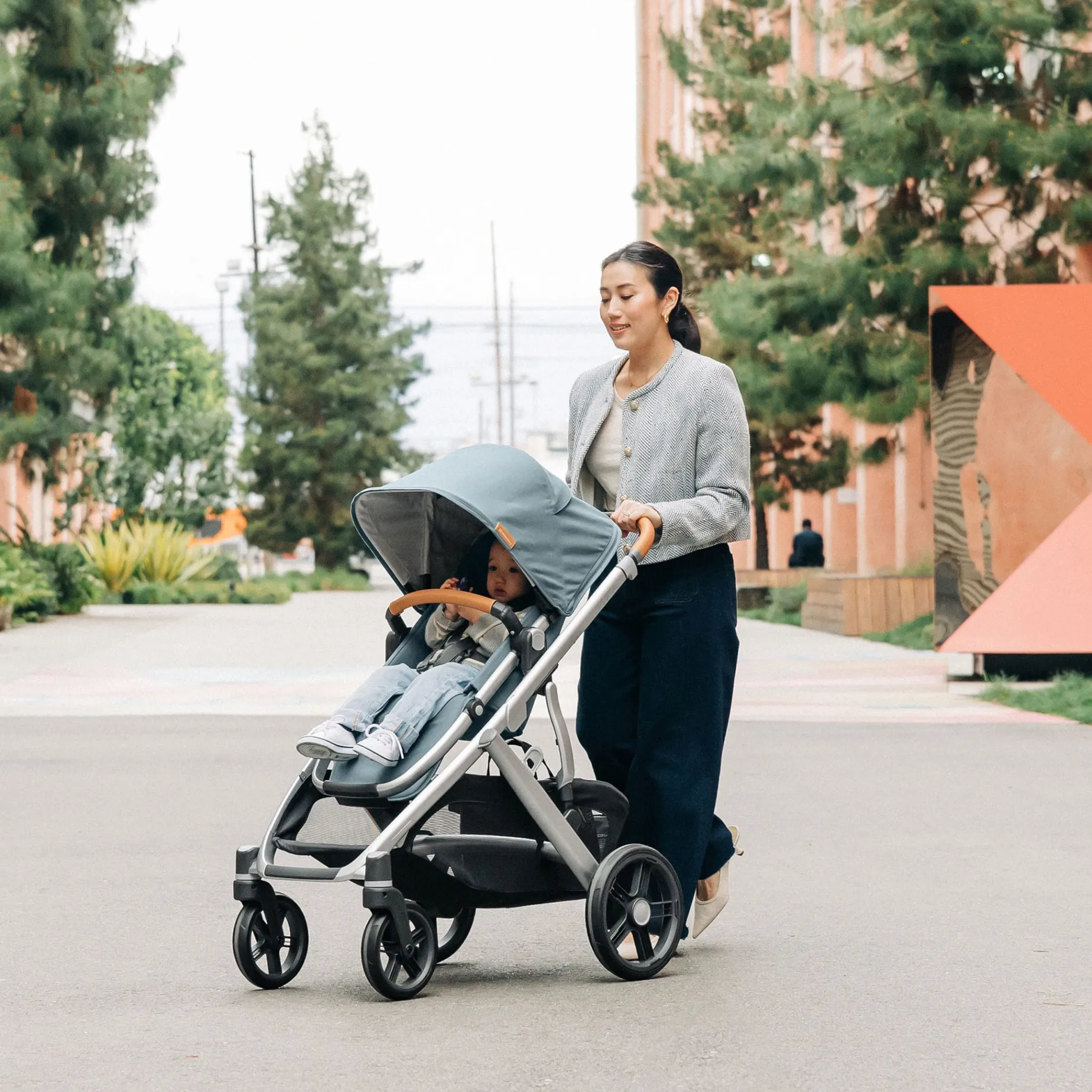 – Reflective accents on the wheels and basket for increased visibility while strolling