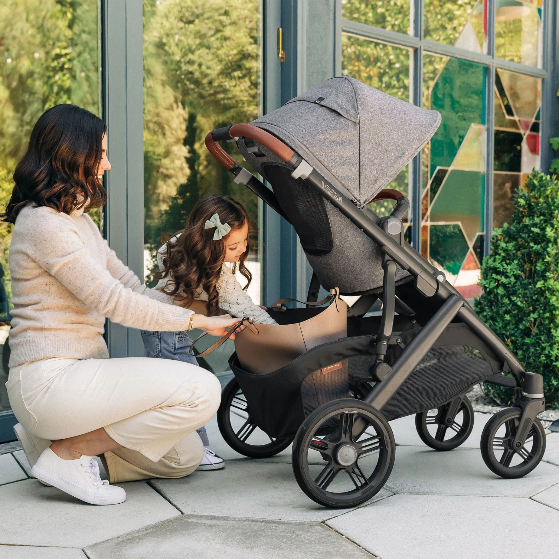 The UPPAbaby Vista V3 stroller is intuitively designed to “grow” with your family! It starts as a single stroller but can easily transform to accommodate up to three children with added accessories and adapters — becoming the ultimate in portability and convenience!
