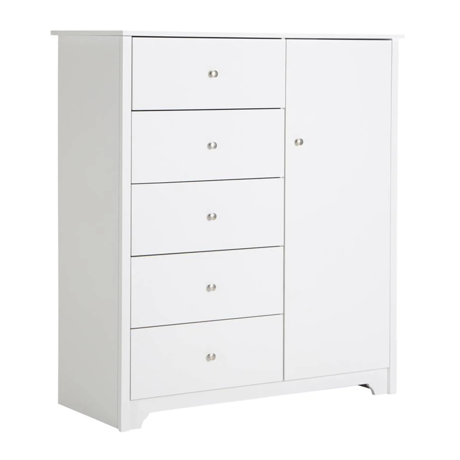 -Behind the door: 5 storage spaces separated by 3 adjustable shelves, and one fixed